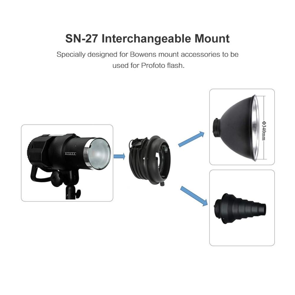 Holen Sie mit unserer austauschbaren Metallhalterung für Bowens-Zubehör das Beste aus Ihrem Profoto Flash heraus. Dank der stabilen Konstruktion eignet sich diese Halterung perfekt für Blitzschienen und garantiert professionelle Ergebnisse.