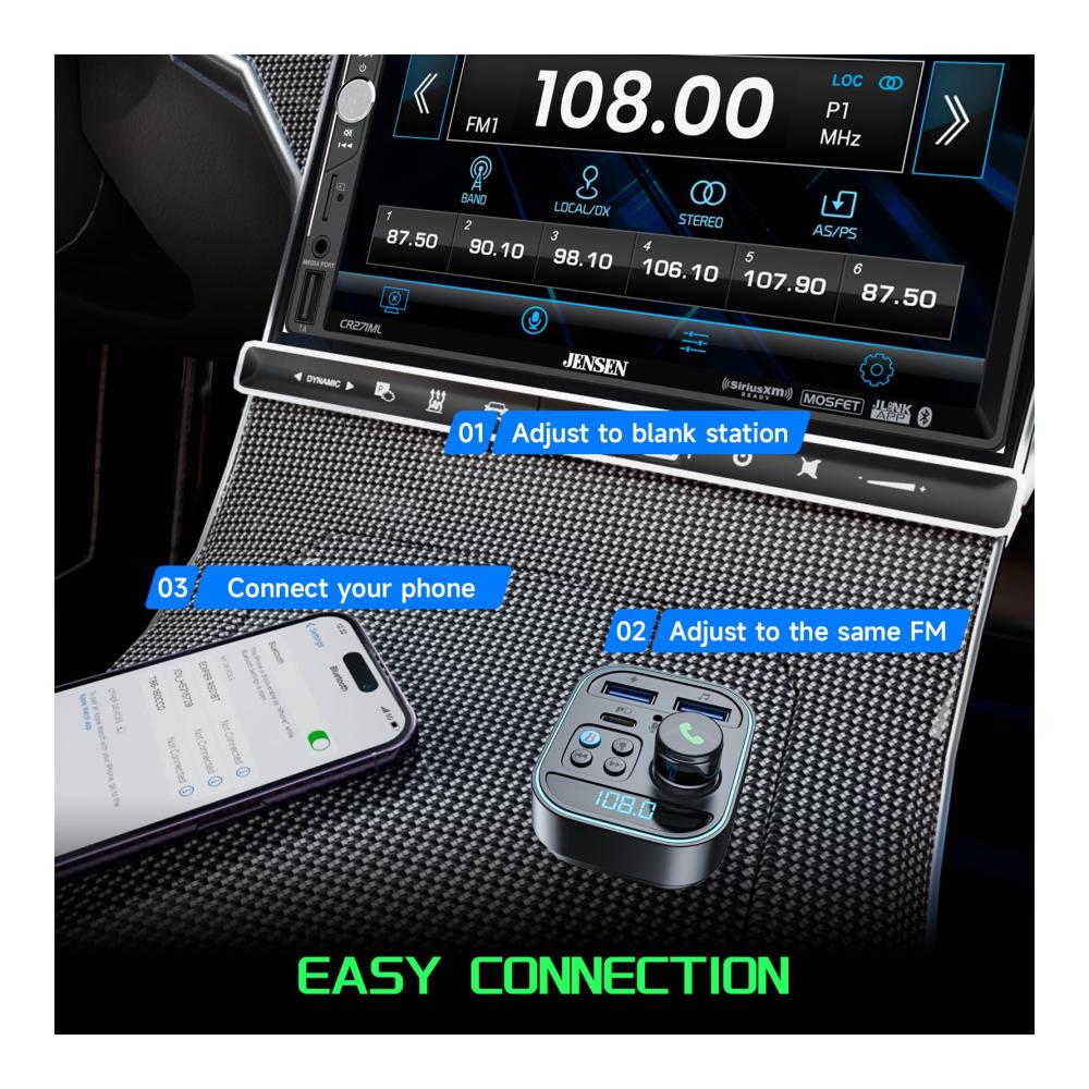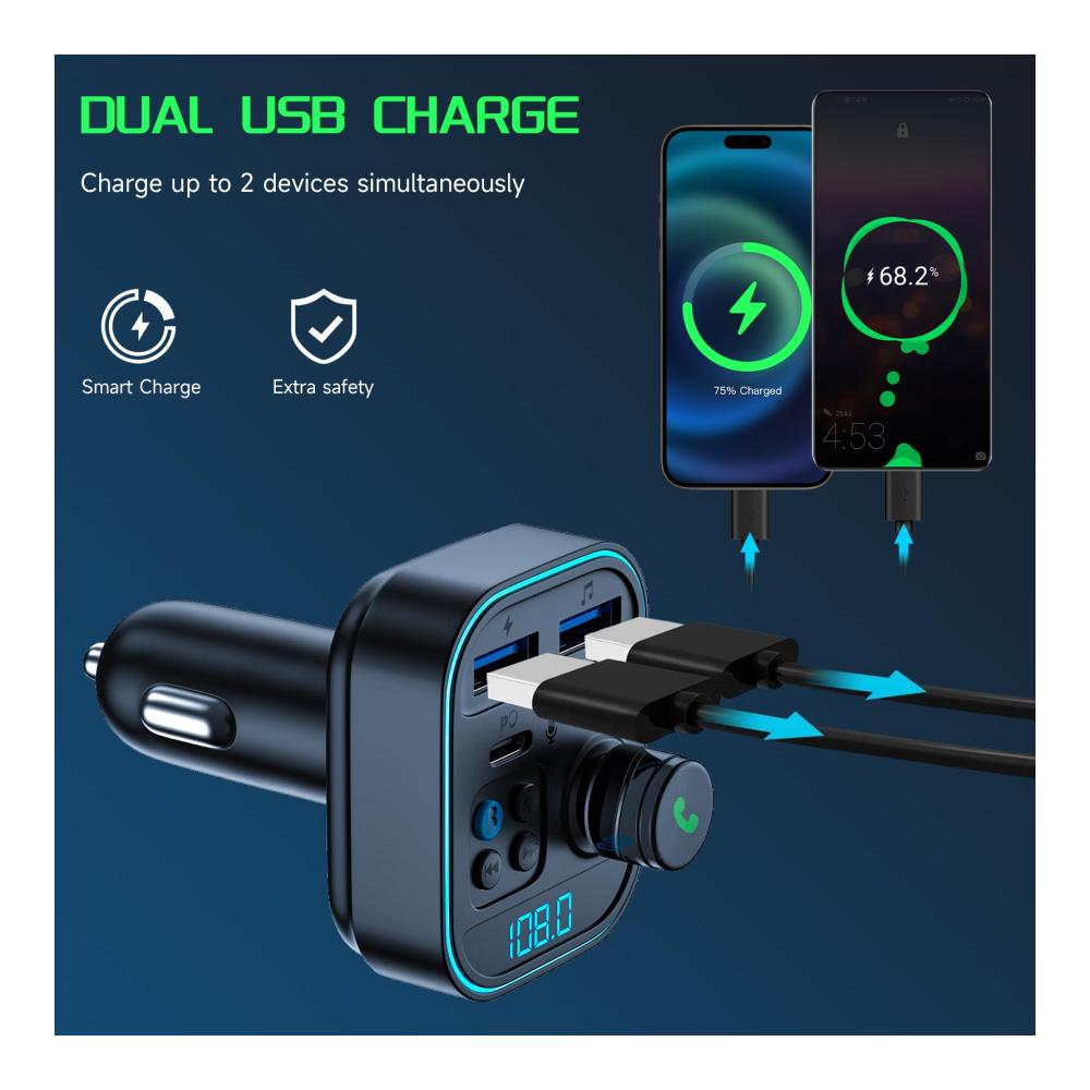 Der Spedal Bluetooth FM Transmitter fürs Auto bietet drahtlose Freiheit und erstklassige Funktionalität. Verwandeln Sie Ihr Auto mit diesem kabellosen Bluetooth FM Radio Adapter in einen Musikplayer und Car Kit mit Hands-Free Calling. Die 2 USB-Ports ermöglichen gleichzeitiges Laden von Geräten, während die Unterstützung für USB-Drives nahtlose Konnektivität bietet.