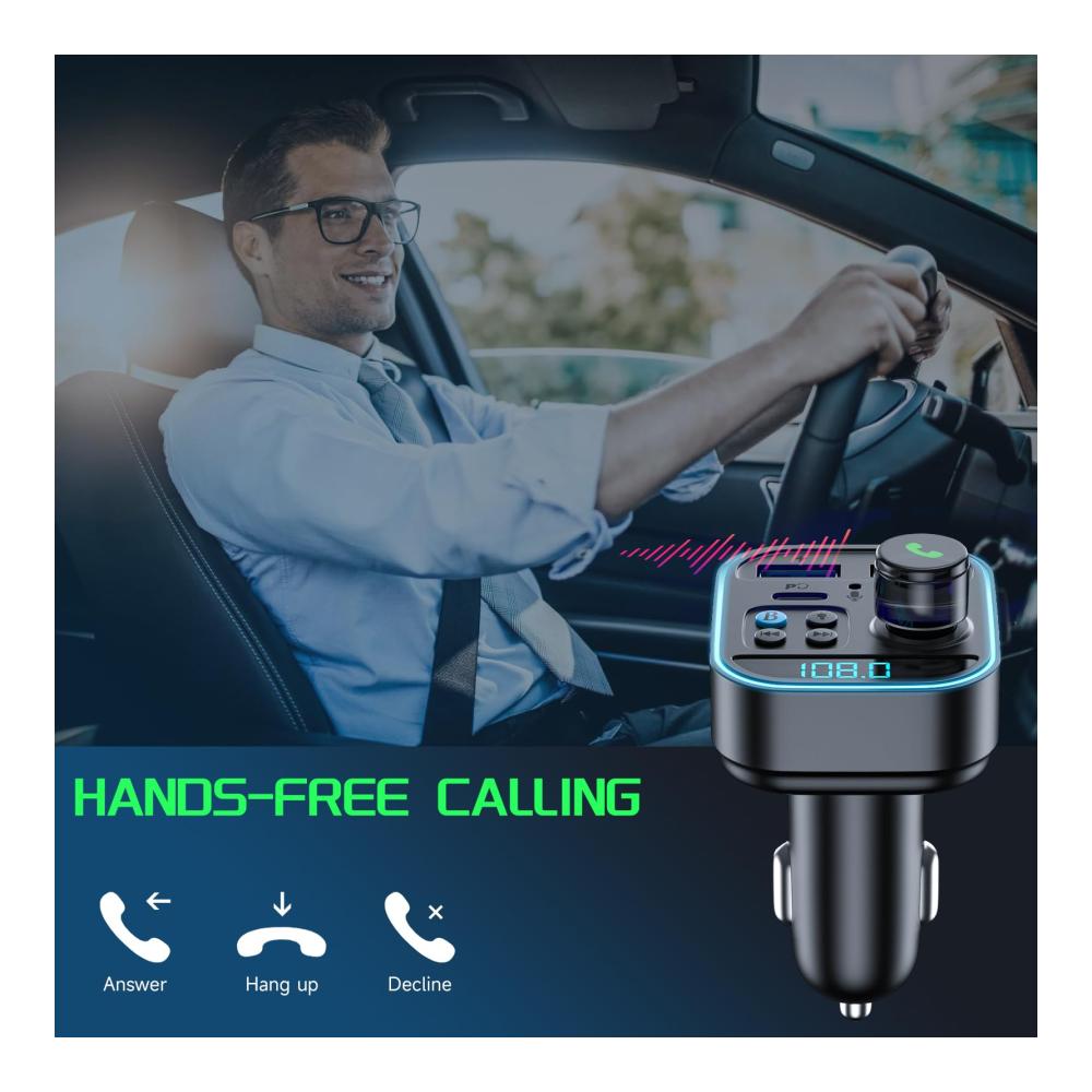 Car Battery Monitoring & Ambient Lighting: Stay informed about your car&39;s condition with the FM transmitter&39;s car battery voltage detection when connected to the cigarette lighter. The blue ambient light circle not only adds a touch of style but also simplifies operation, contributing to a safer driving experience.