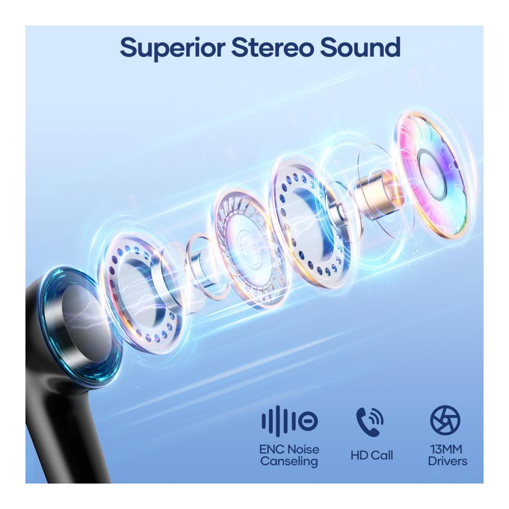 【Tiefe Bässe und kristallklare Anrufe】 Die bluetooth kopfhörer in ear sind mit 13 mm Lautsprechern und dreischichtigen Verbundmembranen ausgestattet und bieten Ihnen kraftvolle Bässe, atemberaubende Höhen und klare Mitten. Wechseln Sie nahtlos zwischen klarem Anruf und Umgebungsgeräuschen, die bloototh kopfhörer bieten das beeindruckendste Klangerlebnis, egal ob Sie Podcasts oder Hörbücher für Ihre Reise hören. Gespräche können überall deutlich gehört werden.