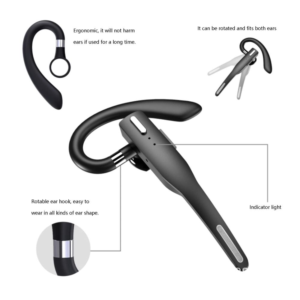 Dank seiner ergonomischen Passform und dem angenehmen Tragekomfort ist dieses Bluetooth-Headset ideal für Fahrer und Büroanwendungen. Die kompakte Größe und das schwarze Design machen es zu einem stilvollen Begleiter für unterwegs.