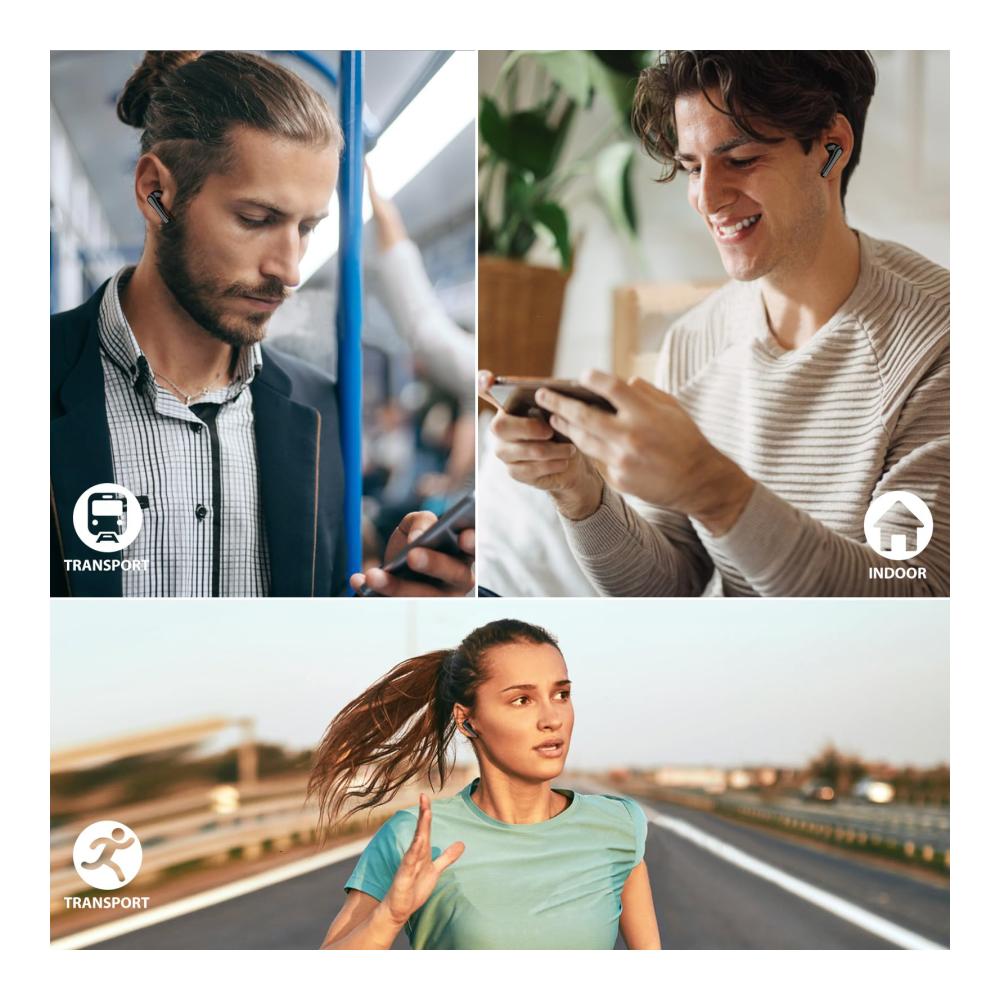 Mit der schweißresistenten Funktion können Sie die Kopfhörer beim Laufen, Fitness, Radfahren und anderen Sportarten tragen.