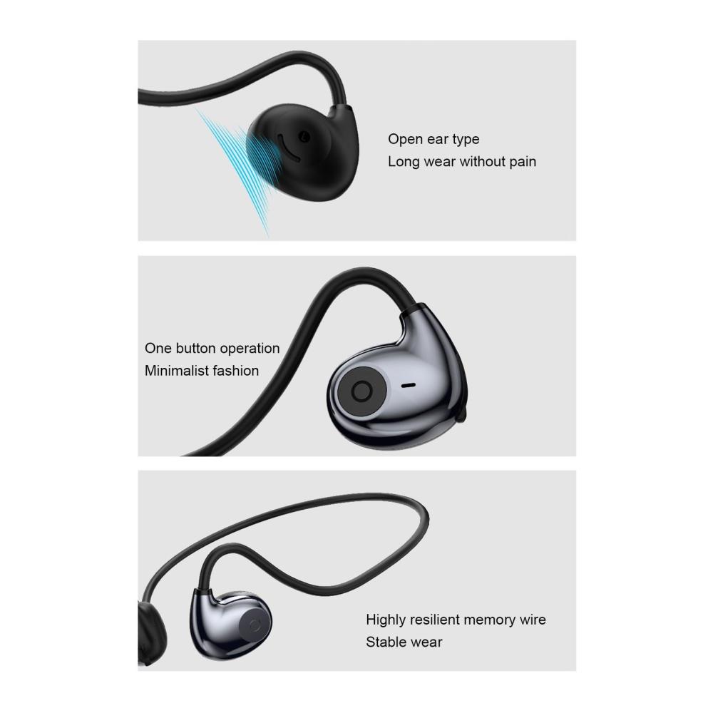 1. KOMFORTABEL ZU TRAGEN: Luftleitungskopfhörer mit offenem Ohr und ergonomischem Design, beide Ohren frei, bequem und stabil, sportliches Springen ohne Herunterfallen.2. LANGE BATTERIE LEBENSDAUER: Open Ear Sportkopfhörer verfügen über einen eingebauten 75 mAh Akku mit einem Low Power Chip und unterstützen intelligentes Laden vom Typ C mit einer Akkulaufzeit von 10 Stunden und starker Leistung.3. LEICHTES DESIGN: Luftleitungs Sportkopfhörer mit leichtem Gehäusedesign, sodass Sie ein unvorstellbar leichtes Erlebnis, bequeme Passform und schmerzfreies Tragen erleben können.4.5.2: Drahtlose Sportkopfhörer verwenden einen5.2 Chip mit längerer Übertragungsentfernung, schnellerer Geschwindigkeit und größerer Klangreichweite und sorgen so für eine bessere HiFi Klangqualität.5. WASSERDICHT: DrahtloseSportkopfhörer sind mit mehreren Prozessen konzipiert, die Regen und Schweiß im täglichen Leben wirksam verhindern und sich problemlos in verschiedenen Situationen anwenden lassen.Spezifikation:Artikeltyp: Offenes Ohr Kopfhörer mit LuftleitungMaterial: KunststoffBluetooth Protokoll: 5.2Übertragungsreichweite: 10 m/10,9 ydProduktbatterie: 75 mAH Lithiumbatterie (im Lieferumfang enthalten) Eigenschaften: Luftleitung, Leistungsanzeige, Anruffunktion, Musikunterstützung, MehrpunktverbindungPaketliste:1 xKopfhörer1 x Ladekabel1 x Anleitung Handbuch