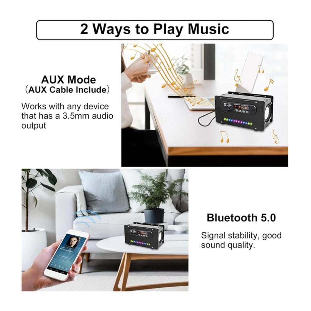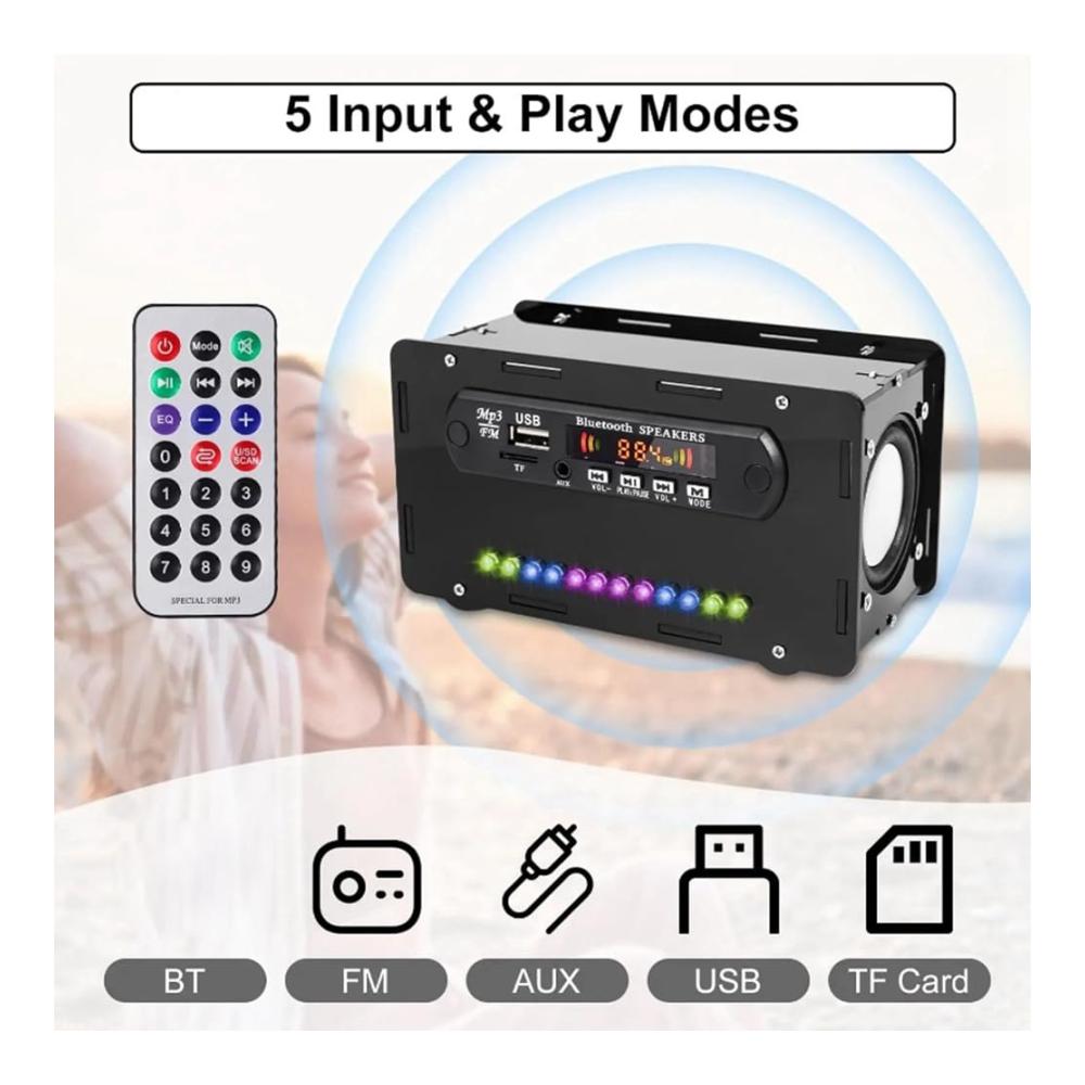 Willkommen bei unserem DIY-Bluetooth-Lautsprecher-Kit! Tauchen Sie ein in die Welt der persönlichen Audiogestaltung und erschaffen Sie Ihren eigenen tragbaren Sound mit unserem hochwertigen Kit. Dieses Set enthält einen leistungsstarken LED-UKW-Radio-Bluetooth-Lautsprecher und einen USB-Mini-Heim-Sound-Verstärker mit Digitalanzeige – alles in elegantem Schwarz gehalten.