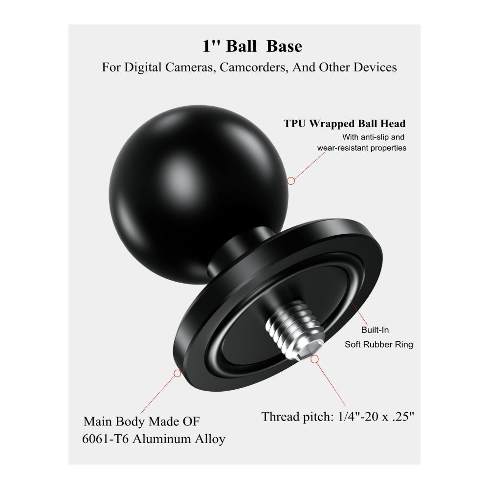 Die BRCOVAN 2St Aluminiumlegierung Basis ist perfekt für Action-Kameras und Camcorder. Mit einem 1 Zoll TPU Kugel Adapter und einem 1/4-20 Gewindebolzen ermöglicht sie schnelle und sichere Befestigung. Kompatibel mit RAM Mounts B Größe 1 Kugel Doppelsockelarm für ultimative Vielseitigkeit. Das robuste Design gewährleistet eine zuverlässige Leistung in allen Situationen.