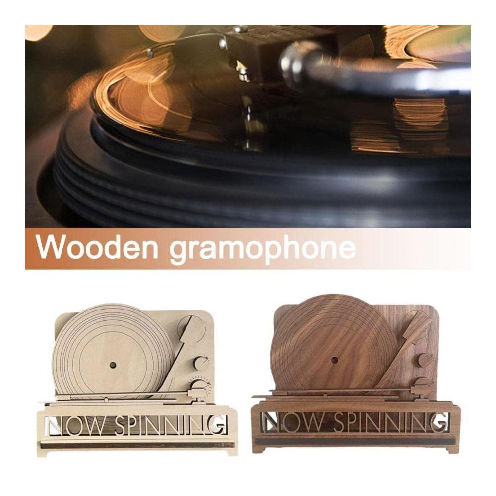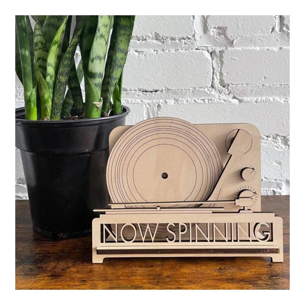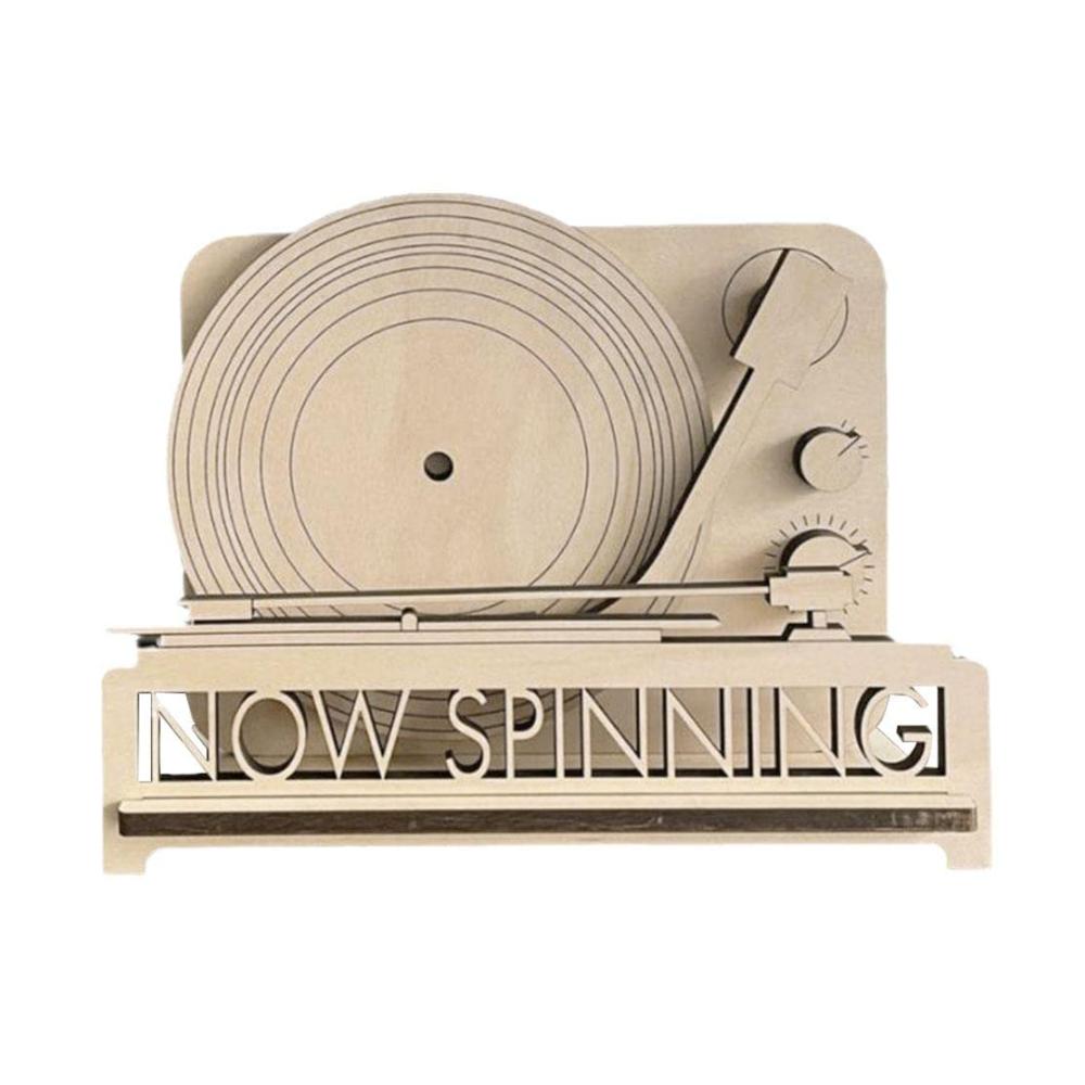 Dieses Plattenspieler-Regal ist aus Holz, geeignet für Einzel- oder Doppelspeicherplatten. Wenn Ihre Schallplatte abgespielt wird, legen Sie Ihr Vinyl hier.