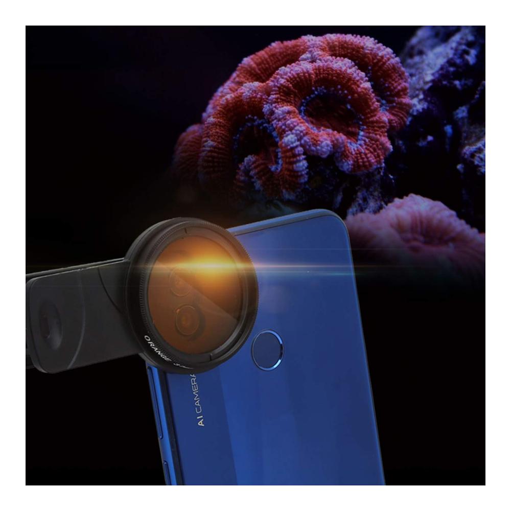 【Verschiedene Effekte】 Das Makroobjektiv kann starke Nahaufnahmen des Motivs liefern. Gelbfilter, filtern Sie das blaue Licht des Aquariums heraus, um das echte Schießen wiederherzustellen. Orangenfilter können die Farbe der Koralle verstärken und die Koralle farbenfroh machen.