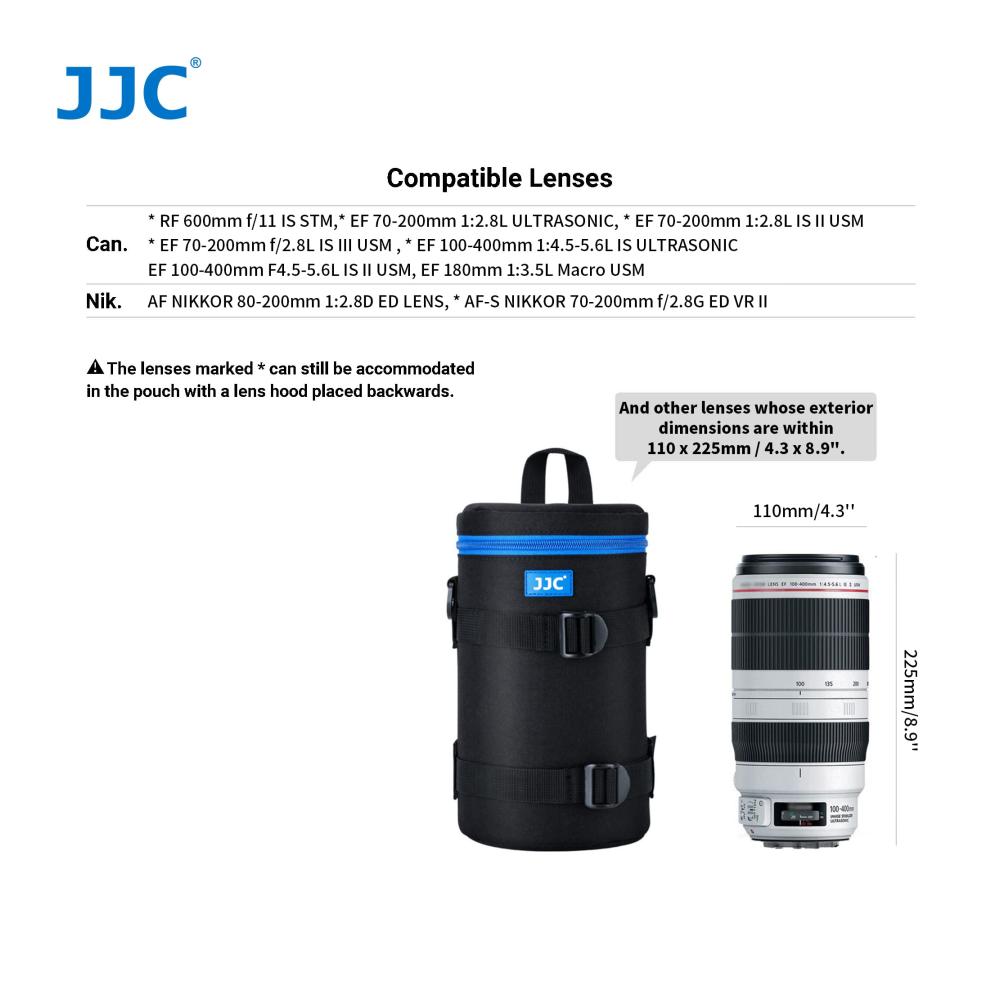 • Der aktualisierte JJC DLP-5II wasserdichte Deluxe Objektivtasche mit Gurtband – Innenmaß 110 x 225mm (4.3 x 8.9”)