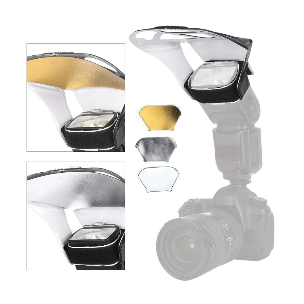 • Dieses SLR Kamera Blitzlicht Reflektorplatinen Set wurde speziell für die oberen Blitzlichter von Spiegelreflexkameras entwickelt und mildert starkes Blitzlicht effektiv für natürliche Fotos. Dank seines tragbaren Designs ist es ideal für verschiedene Anlässe und sorgt für ein natürlicheres Erscheinungsbild auf Ihren Fotos.