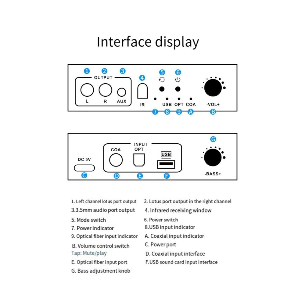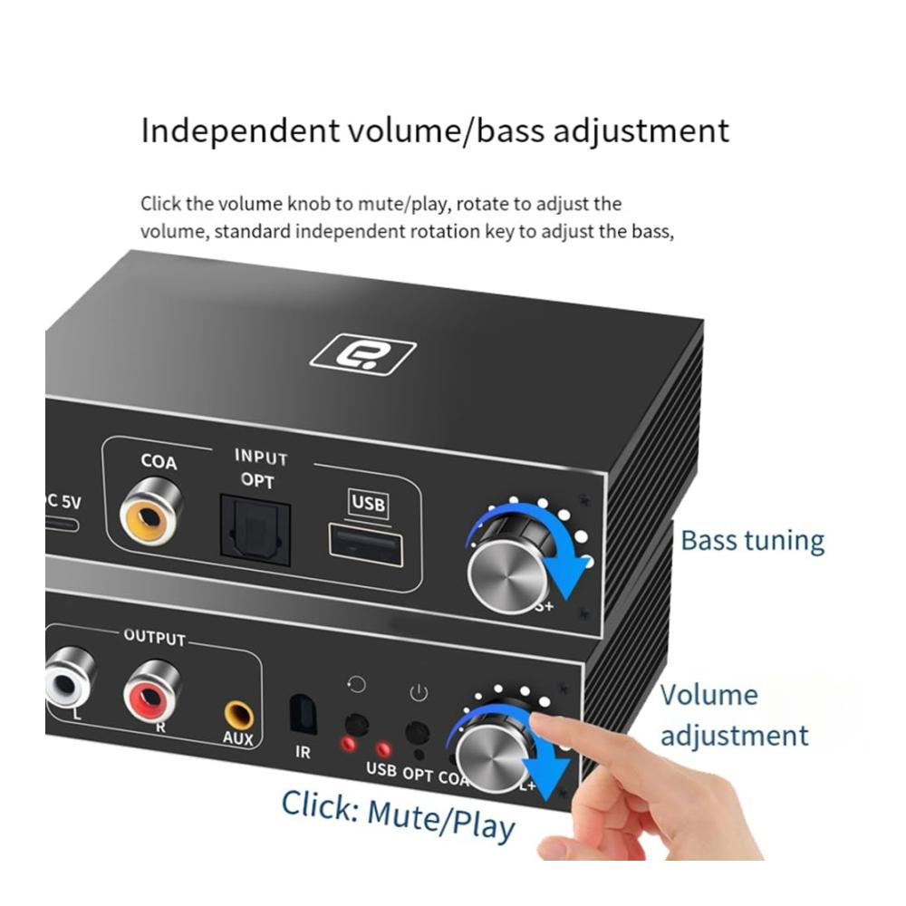 Bass-Einstellknopf: Die gestaltete 192-kHz-DAC-Bass-Einstellfunktion kann einen atemberaubenden Stereoklang und einen starken Basseffekt liefern, eine perfekte Umgebung schaffen, die sich vom Klangfeld unterscheidet Welt von Bass