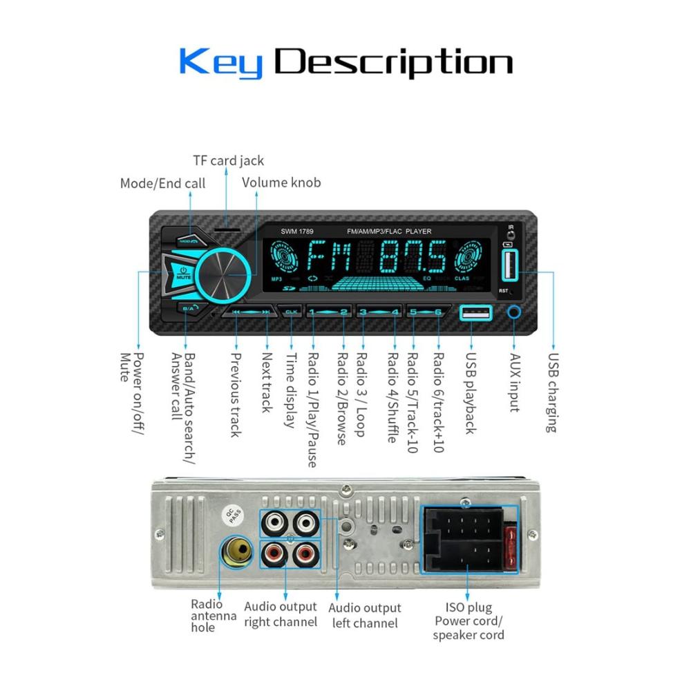 Desikixudy Farbige Hintergrundbeleuchtung und farbiges LCD-DisplayAusschalten mit automatischer Speicherfunktion im Radio- oder TF/USB/AUX-Bluetooth-Funktion: Kann das Telefon verbinden, um die Hände frei zu haben, wenn ein Anruf kommt, außerdem sparen Sie sogar eine Summe Geld, um einen Business-Kopfhörer zu kaufenStereo-Soundeffekte: Der eingebaute leistungsstarke IC sorgt für Stereo-Soundeffekte, mit denen Sie Fahrspaß erleben könnenUKW-Radio: Hochempfindlicher Tuner, unterstützt UKW-Stereo-Tuning (87,5~108,0 MHz), 3-Band (FM1~FM2~FM3), kann Radiosender speichernBatterie: 2 x AAA (ohne)Material: ABSFarbe: schwarzPackungsinhalt:1 x Auto-MP3-Player1 x Stromkabel1 x Lautsprecherkabel1 x Fernbedienung (ohne Batterie)2 x Teardown-Schlüssel (Der des Demontageschlüssels ist zufällig und die angegebene Farbe wird nicht akzeptiert.)Nur der oben genannte Paketinhalt, andere Produkte sind nicht enthalten.Hinweis: Wegen der Lichtreflexion und Bildschirme könnte der Farbeton in den Fotos sowie des tatsächlichen Produkts etwas unterschiedlich sein. Der erlaubte Messfehler ist /- 1-3 cm.