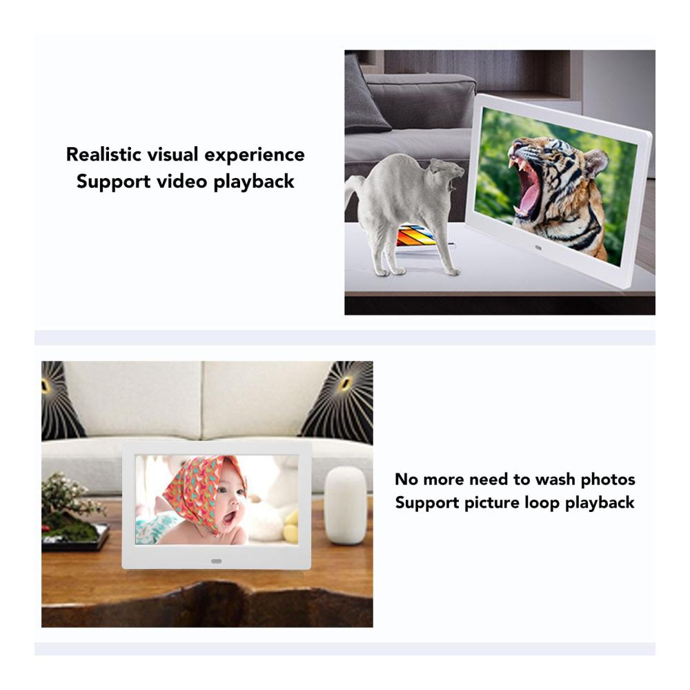 • [Praktische Fernbedienung] – Steuern Sie Ihre Fotowiedergabe ganz einfach mit der mitgelieferten Infrarot-Fernbedienung, sodass keine manuelle Bedienung erforderlich ist. Der Rahmen wird außerdem mit einer Stützhalterung für eine mühelose Platzierung auf dem Schreibtisch geliefert.