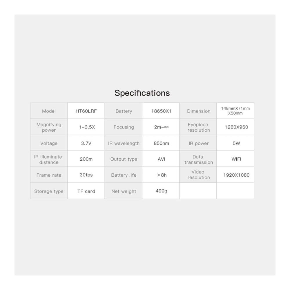 • Das Nachtsicht-Hochleistungs-Fernglas HT-60LRF ist ein Meisterwerk der Technologie und Funktionalität. Hergestellt aus hochwertiger 7050 Luft- und Raumfahrt-Aluminiumlegierung, ist es widerstandsfähig gegenüber Druck und Stößen, ideal für Outdoor-Aktivitäten. Dank des SONY STARVIS2 SytongHD-syll1 Hybrid-Bildsensors bietet es eine herausragende Nachtsicht mit gesteigerter Bildempfindlichkeit und reduziertem Rauschen. Mit der Möglichkeit, Fotos und Videos aufzunehmen und drahtlos zu übertragen, sowie einem einfach austauschbaren 18650 Akku, ist es ein zuverlässiger Begleiter bei Tag und Nacht. Perfekt für die Jagd und andere Beobachtungsanwendungen.