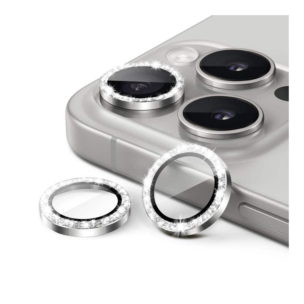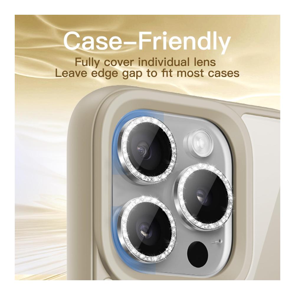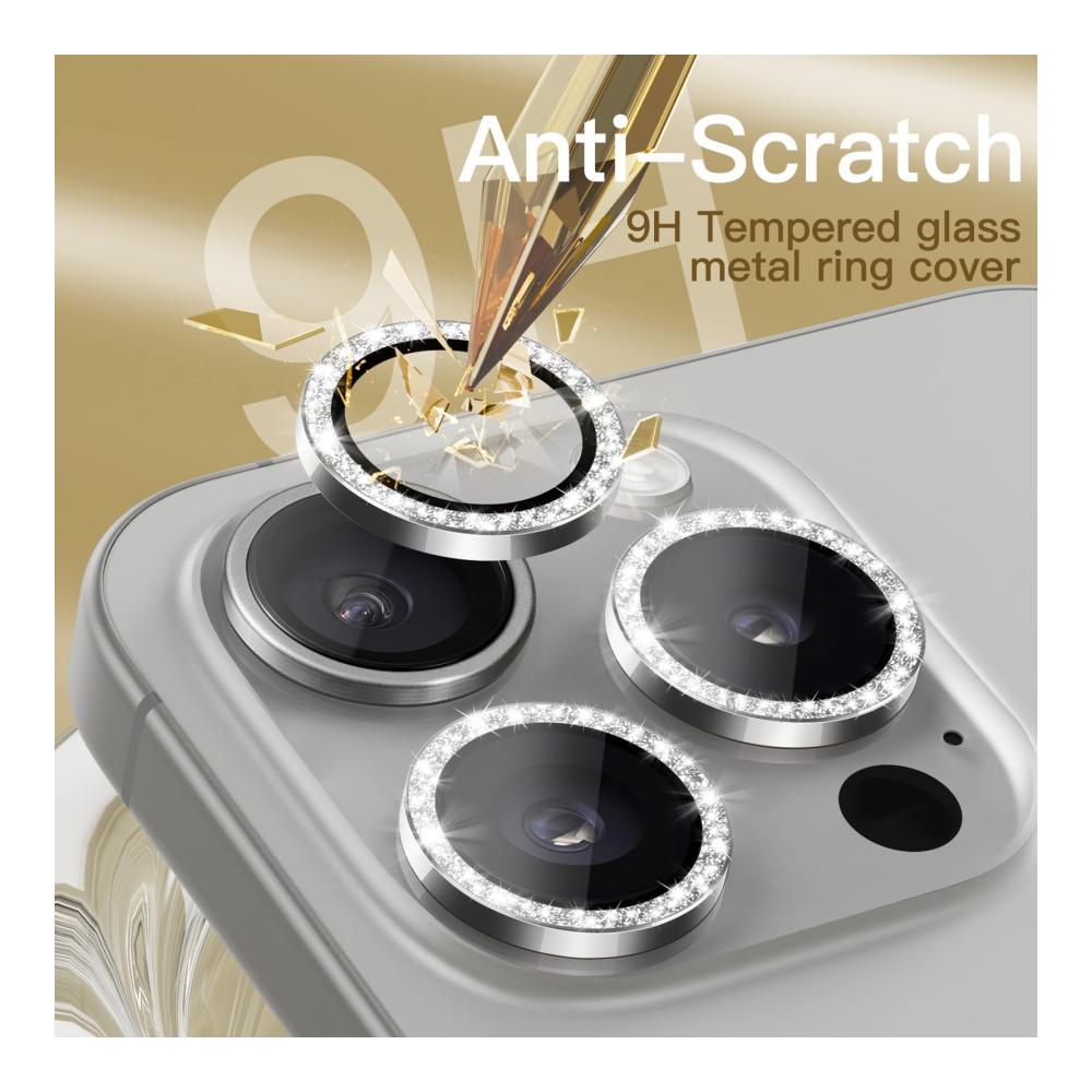 JETech Kameraschutz für iPhone 15 Pro 6,1 Zoll und iPhone 15 Pro Max 6,7 Zoll, Bling Glitzer Individuelle 9H Gehärtetes Glas Metallring Abdeckung, HD Klar, 3 Stück