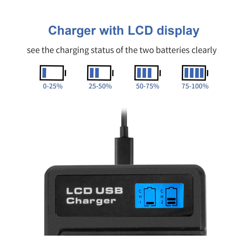【Paket】 2 * Batterien, 1 * Dual Ladegerät, 1 * Micro-USB-Kabel.