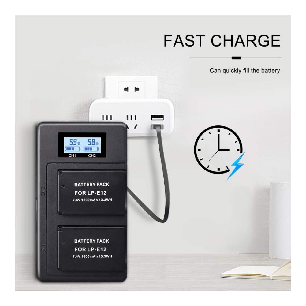 Lieferumfang】 2x LP-E12-Akku 1x Lp-E12-LCD-Ladegerät 1x Bedienungsanleitung (12 Monate Herstellergarantie ab Kaufdatum, 7 * 24-Stunden-E-Mail-Kundendienst)