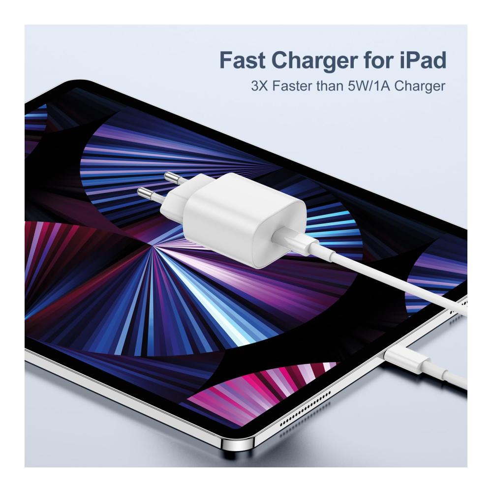 HOHE GESCHWINDIGKEIT MIT 20 WATT: Das neueste KenSera USB-C Schnellladegerät ermöglicht eine schnelle Ladung in Kombination mit dem mitgelieferten 2m langen USB-C-Kabel. Laden Sie das iPad Pro oder das 2021 iPad Pro 12,9 Zoll in nur 2,5 Stunden – 3-mal schneller als das Original-USB-Ladegerät.