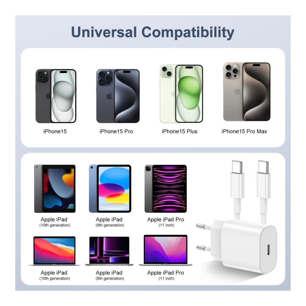 Erleben Sie blitzschnelle Ladezeiten mit unserem Thiyniya 2er-Pack USB-C Ladegerät und Ladekabel. Kompatibel mit iPhone 15/15 Pro/15 Pro Max/15 Plus, iPad Pro/Air, MacBook Pro und Samsung Galaxy S23 S22 S21.
