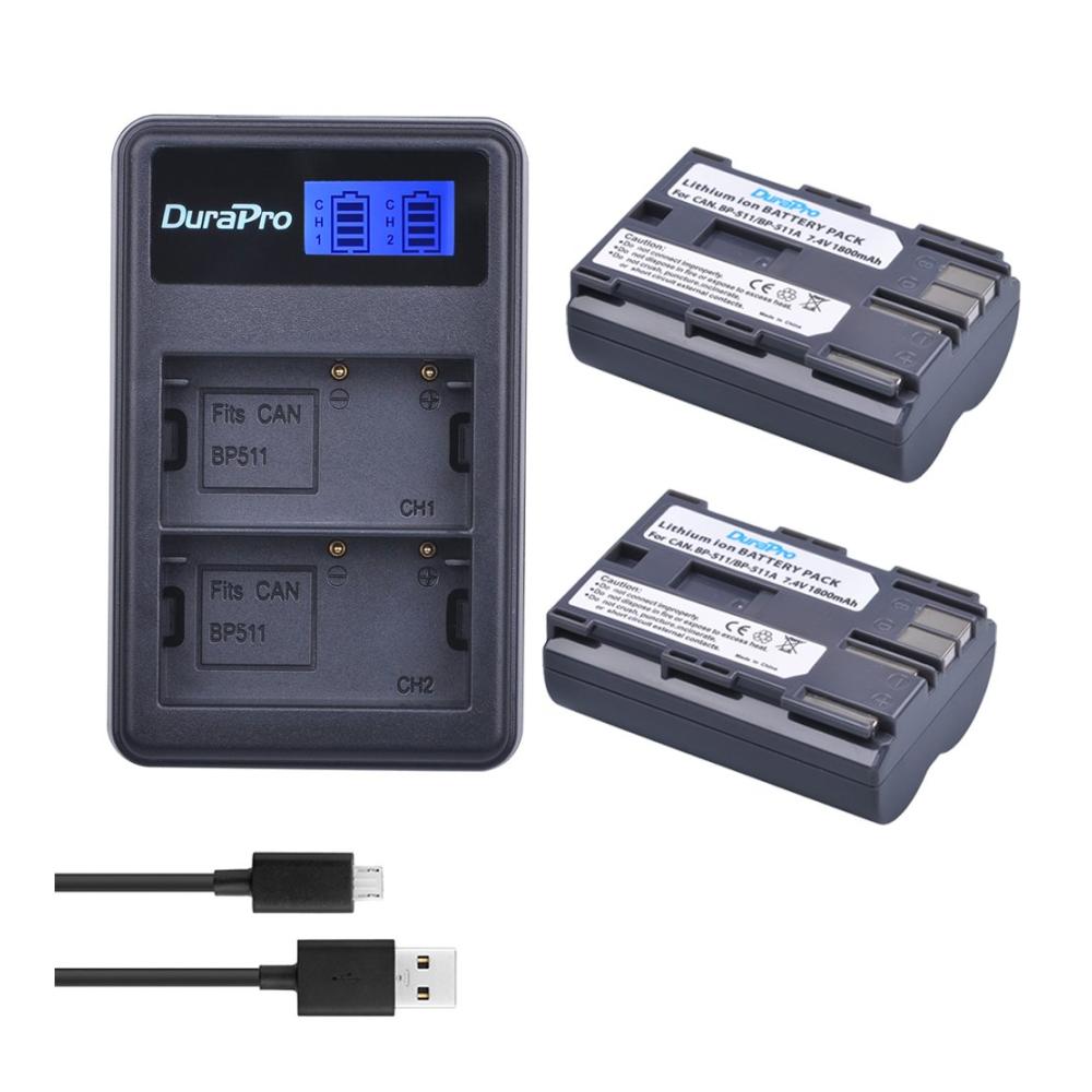 Package includes: 2X BP-511 Batteries LCD Dual USB Charger Micro Cable Manual 30days Money Back; 2 Years Waranty