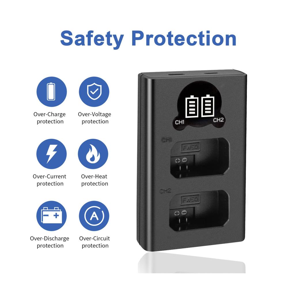 【Vollständig kompatibel】 Ersatzbatterien mit Smart Ladegerät Power für Sony Alpha a6500, a6300, a6000, a7s, a7, a7s ii, a5100, a5000, a3000, a7r, a7 ii, NEX-3, NEX-3N, NEX-5, NEX-5N, NEX-5R, NEX-5T, NEX-6, NEX-7, NEX-C3, NEX-F3, SLT-A33, SLT-A35, SLT-A37, SLT-A55V DSC-RX10 Digital Camera.