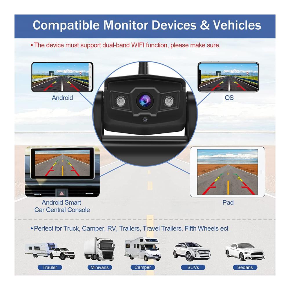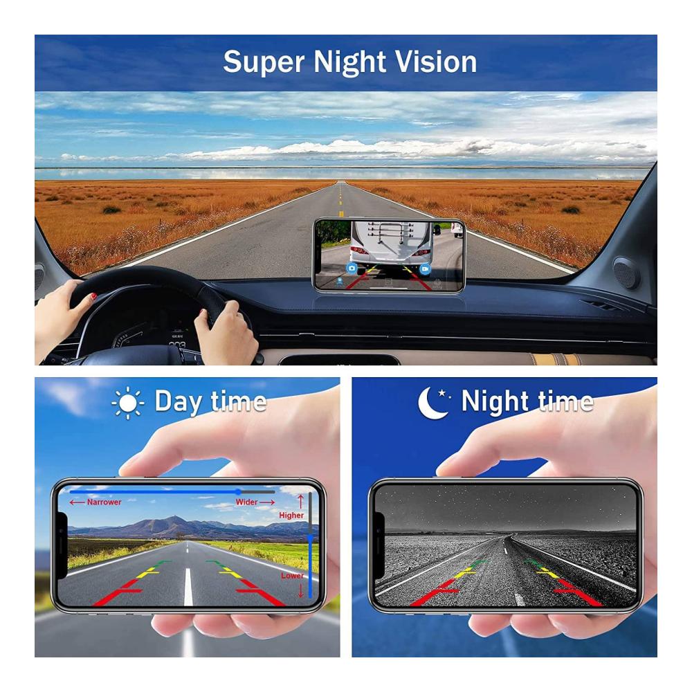[Stabiles drahtloses Übertragungssignal] Im Gegensatz zu anderen herkömmlichen drahtlosen Rückfahrkameras erzeugt die WiFi-Rückfahrkamera ihr eigenes WiFi-Signal (unterstützt keine Internetverbindung). Das drahtlose Digitalsystem hat eine digitale Funkreichweite von 100 Fuß (ohne Hindernisse) und funktioniert garantiert auch auf der Autobahn.