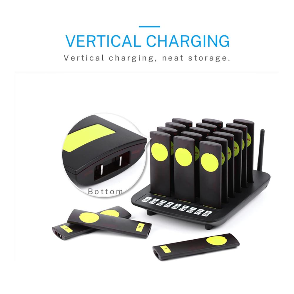 1. Verwenden Sie ein verstecktes Ladegerät, NiMH, hohe Qualität. Die theoretische Empfangsentfernung beträgt mehr als 3000 Meter, mehr als 10 Stockwerke und die Standby-Zeit beträgt mehr als 7*24 Stunden. Beste Wahl für Social Distancing Buzzer Pager