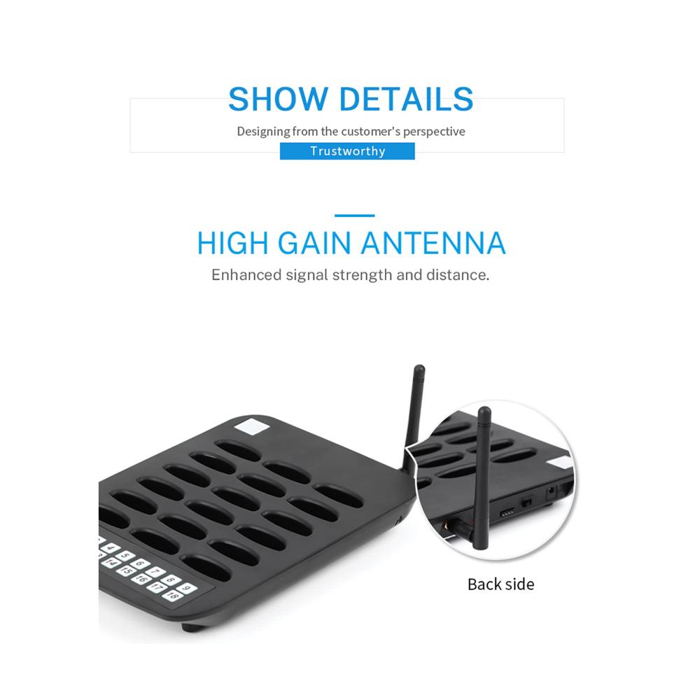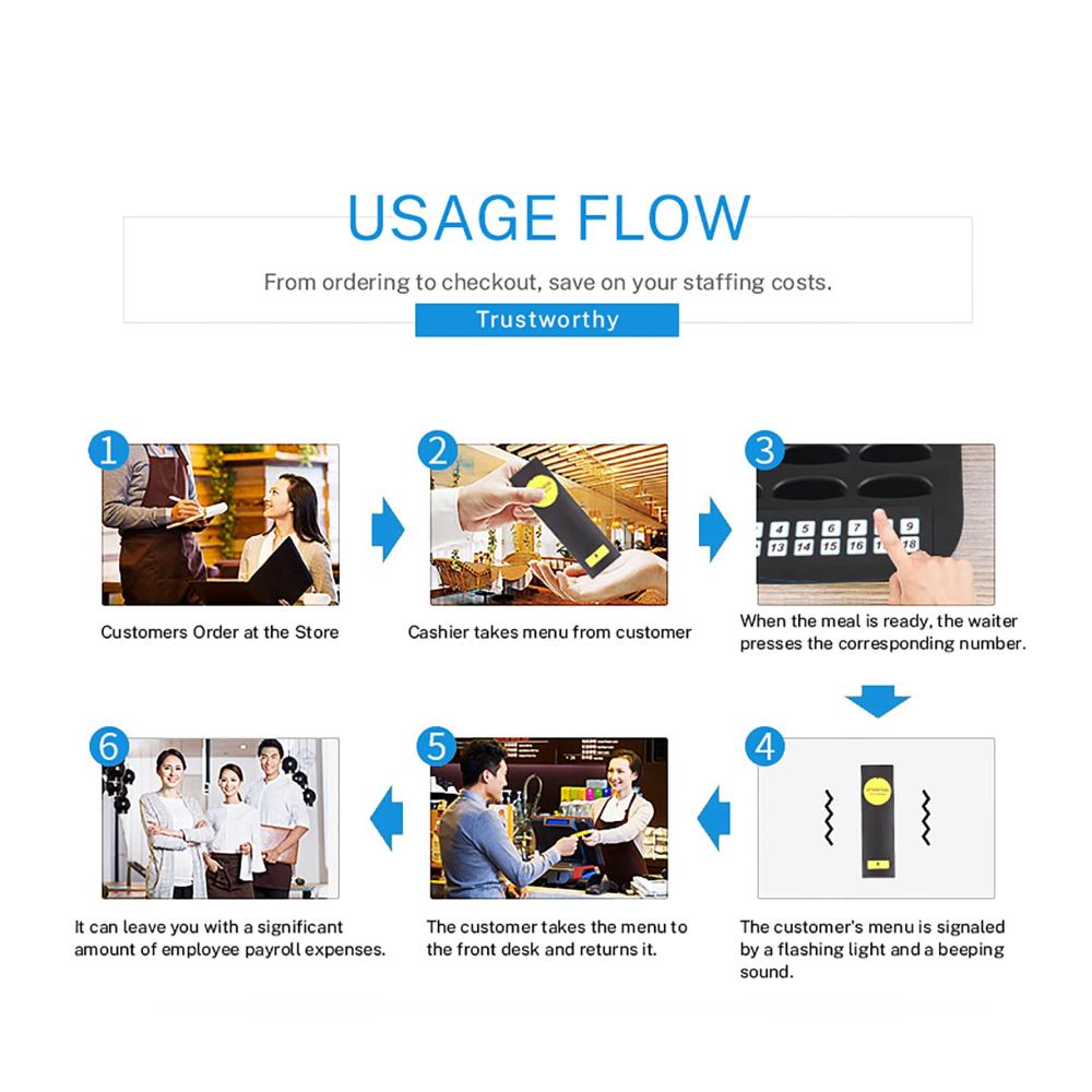 5. Anwendbare Szenarien: Dieses Paging-System eignet sich für Milchteeläden, Food-Courts, Kliniken, Kirchen, Autowerkstätten, Fastfood-Restaurants, Cafés, Pizzerien, Banken, Fabriken, Einkaufszentren, Pflegeheime, Testzentren oder andere Warteschlangen Anlässe