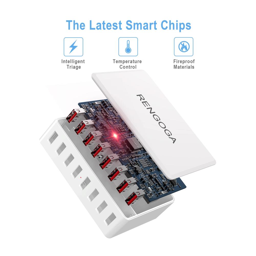 Sicher und Zuverlässig: Die RENGOGA USB Ladestation bietet Überspannungsschutz, Überladungsschutz und intelligente Temperaturregulierung, um Ihnen und Ihren Geräten zuverlässige Sicherheit zu bieten.