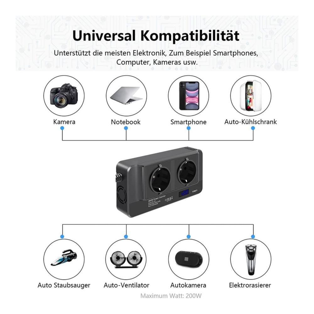 **200W Auto-Wechselrichter: Spannungswandler für unterwegs**