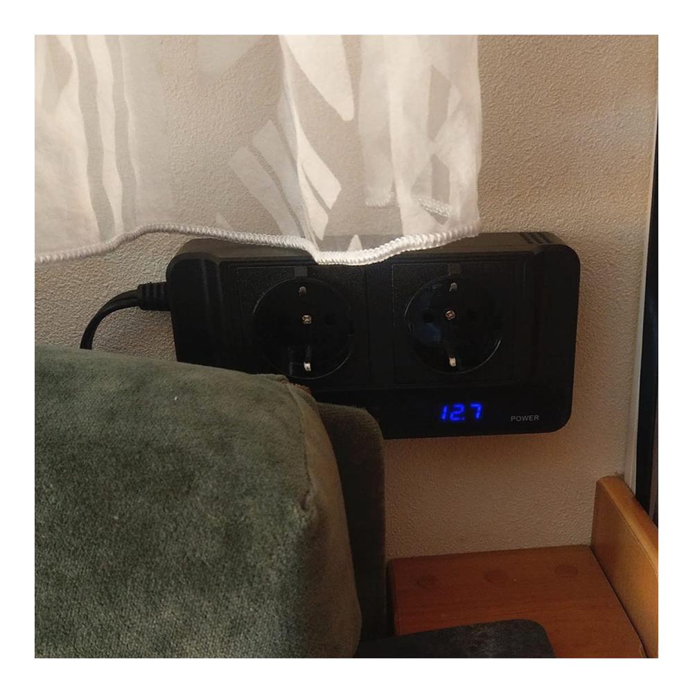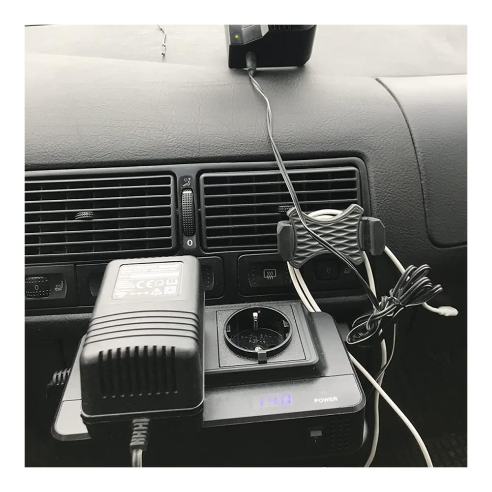 Der Wechselrichter verfügt über zwei Steckdosen und vier USB-Autoladegeräte, die Ihnen eine breite Palette von Anschlussmöglichkeiten bieten. Laden Sie Ihre Smartphones, Tablets, Laptops und andere Geräte bequem auf, egal wo Sie sich gerade befinden. Die integrierten USB-Anschlüsse sind besonders praktisch für die gleichzeitige Aufladung mehrerer Geräte.
