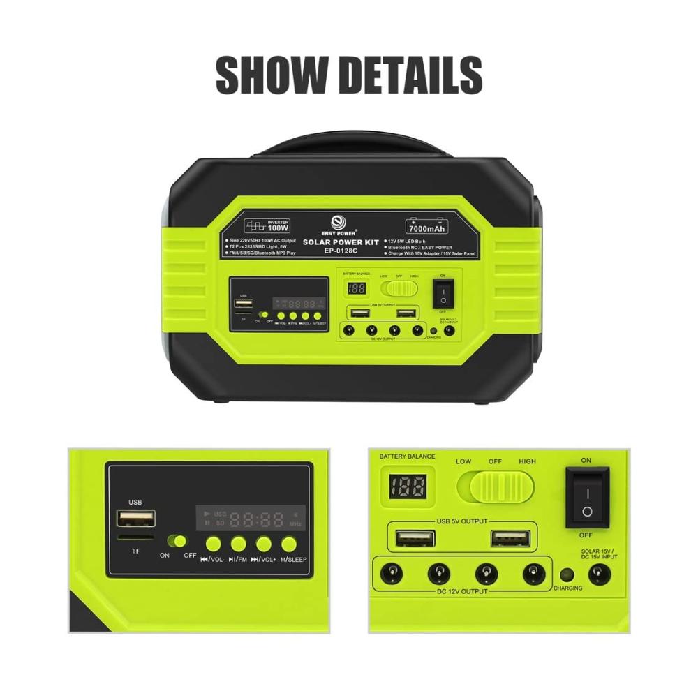 Be the first to review “Effizientes 100W Solarladegerät mit automatischer Leistung und 13W Solarpanel – Laden Sie Ihre Batterien unterwegs auf! Mit 3 LED-Birnen und tragbarem Audio für unterwegs” Antworten abbrechen