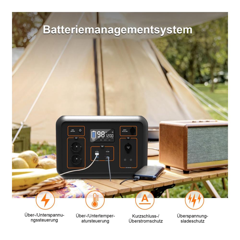 ✅ ♻1132Wh große Kapazität: Power Station Mit einer 1132Wh großen Kapazität, 1200W höhere Nennleistung, kann es viele Geräte Mini-Kühler, Ventilator, Projektor, Lampe Licht und TV für lange Zeit zu betreiben. ✅ ♻ 3 Lademethoden: Sie können wählen, ob Sie das Produkt mit Netzstrom oder Solarenergie aufladen möchten. Es kann mit 200W-Solarmodulen in nur 7-9 Stunden vollständig aufgeladen werden, und 6,5-7,5 Stunden über eine AC-Steckdose, diese fantastische Aufladung ermöglicht es Ihnen, in kürzester Zeit aufzuladen, während Sie unterwegs und außerhalb des Netzes sind.Es dauert etwa 11,5-12,5 Stunden über 12V-Autoladung. ✅ ♻ Verschiedene Ausgangsanschlüsse, kompatibel mit Haushaltsgeräten: 1200W tragbare Stromstation ist weitgehend kompatibel mit 2* AC-Ausgang (230 V/50 Hz, 1200 W, UK-Stecker), 1*DC 12.8V,10A Max Autoanschluss, 2*DC 12.8V, 3A(DC Rated Output), 2* USB-A: QC18W Max (5V/2A,9V/2A,12V/1.5A ), 2*USB-C: PD60W Max PD3.0 und 1*LED-Licht. ✅ ♻ Sicherheitsschutz: Großes LCD-Display zur Anzeige von Leistung und Funktionen, Systemschutzfunktionen wie Unterspannung, Überspannung, Überstrom, ✅ ♻ PREFERRED BATTERY GENERATOR: Unterstützung QC3.0, PD60W Schnellladefunktion, 0.3S Schnellstart.Dies ist das perfekte Geschenk Wahl für Ihre Familie oder Freunde. Auch erfüllen verschiedene Arten von Strom Anforderungen Verwendung für Notfall, im Freien, zu Hause, Reisen, Camping, Road-Trips. Wenn die Leistung des verwendeten Geräts >1200W ist, kann es dieses Kraftwerk beschädigen. Bitte laden Sie es vor dem Gebrauch vollständig auf. ✅ ♻Machen Sie sich das Leben leichter, indem Sie sicherstellen, dass Sie Ihre verschiedenen Geräte gleichzeitig aufladen, so dass die tragbare Stromstation perfekt für den Camper oder Overlander ist. ✅ ♻Das Produkt verfügt über eine eingebaute hocheffiziente 32700 Lithium-Eisen-Phosphat-Batterie mit einer Lebensdauer von mehr als 1500 Mal, ein sicheres Batterie-BMS-Management-System und eine effiziente Energieumwandlungsschaltung – der ideale Begleiter für Camping, Road-Trip, Wohnmobil und Home Backup. ⚡✅Deutschland Festland Versand, Verpackung Qualität und Sicherheit Garantie, 2-3 Arbeitstage Lieferung✅✅ Die Tragbare Powerstation 1200W ist die ideale Lösung für unterwegs, insbesondere beim Camping und auf RV-Touren. Mit einer großen Kapazität von 1132Wh und vielseitigen Anschlüssen, darunter 110V AC und Typ C, können Sie eine Vielzahl von Geräten aufladen und betreiben. Dank der Möglichkeit, sowohl über Solarenergie als auch über das Netz aufgeladen zu werden, ist diese Powerstation äußerst flexibel und bietet Ihnen stets zuverlässige Energie, egal wo Sie sind. Das integrierte LCD-Display und die umfassenden Sicherheitsschutzfunktionen sorgen für eine sichere und benutzerfreundliche Nutzung. Machen Sie sich das Leben leichter und verlassen Sie sich auf diese leistungsstarke Powerstation für Ihre Energiebedürfnisse unterwegs.