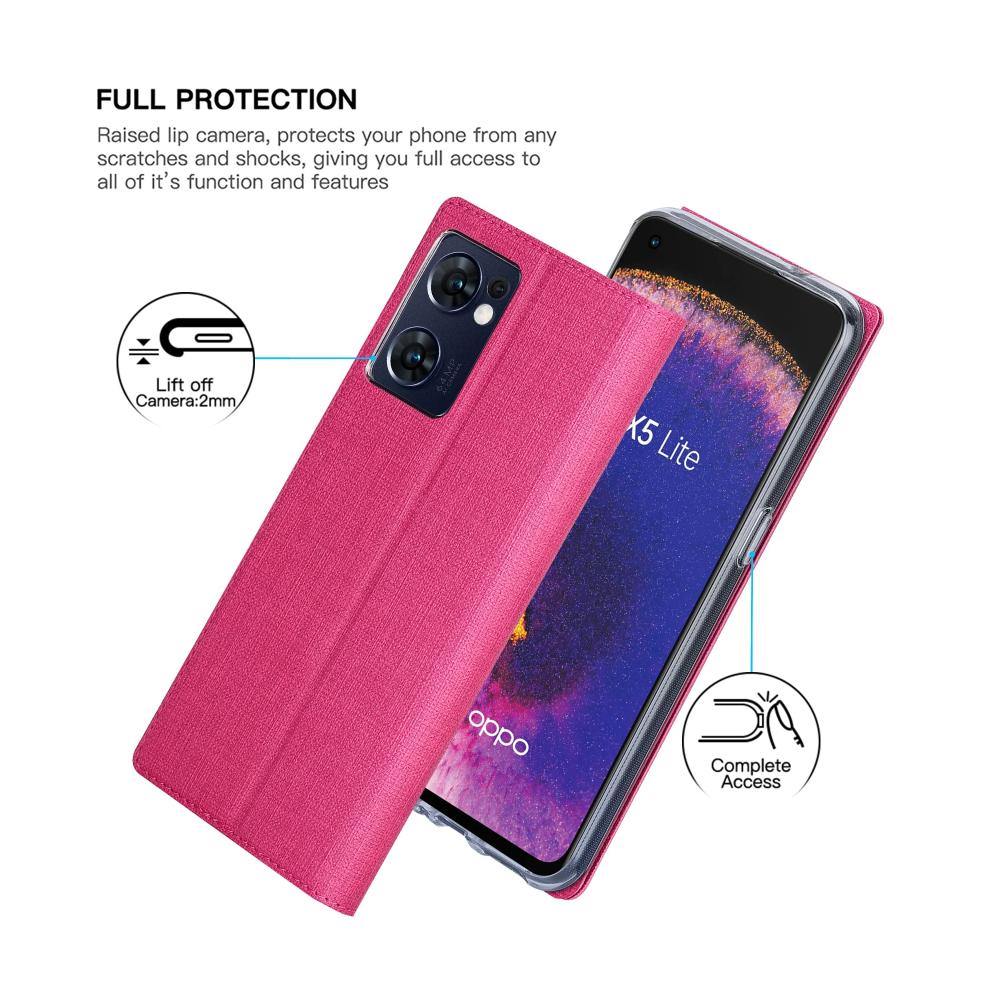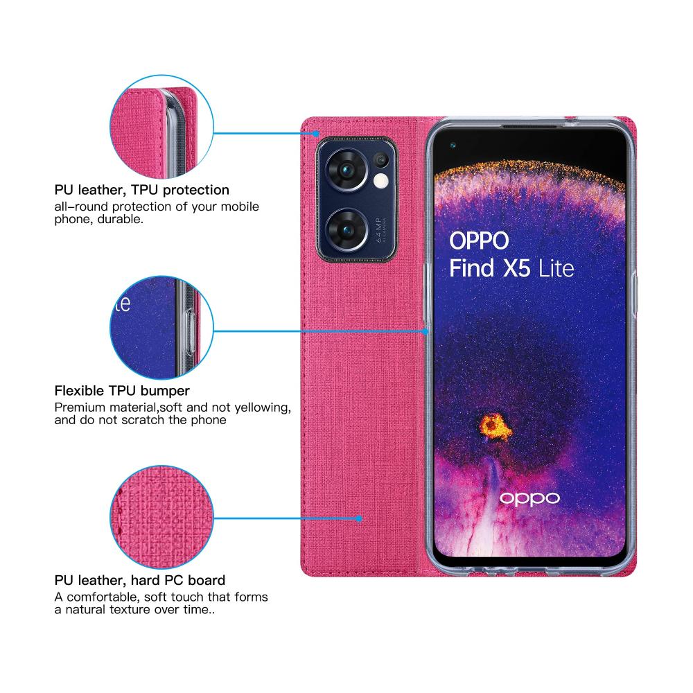 Premium-Qualität – speziell kompatibel mit Oppo Find X5 Lite 2022. Hergestellt aus hochwertigem PU-Leder Material außen, ultradünne und ultradünne Hülle, kleine und sehr weiche klare TPU-Hülle, eine gute Anti-Kratz-Schutzfunktion verhindert, dass Ihre Telefonschale vollständig zerkratzt.