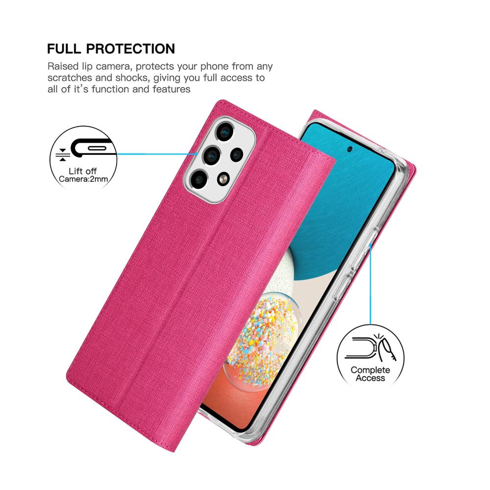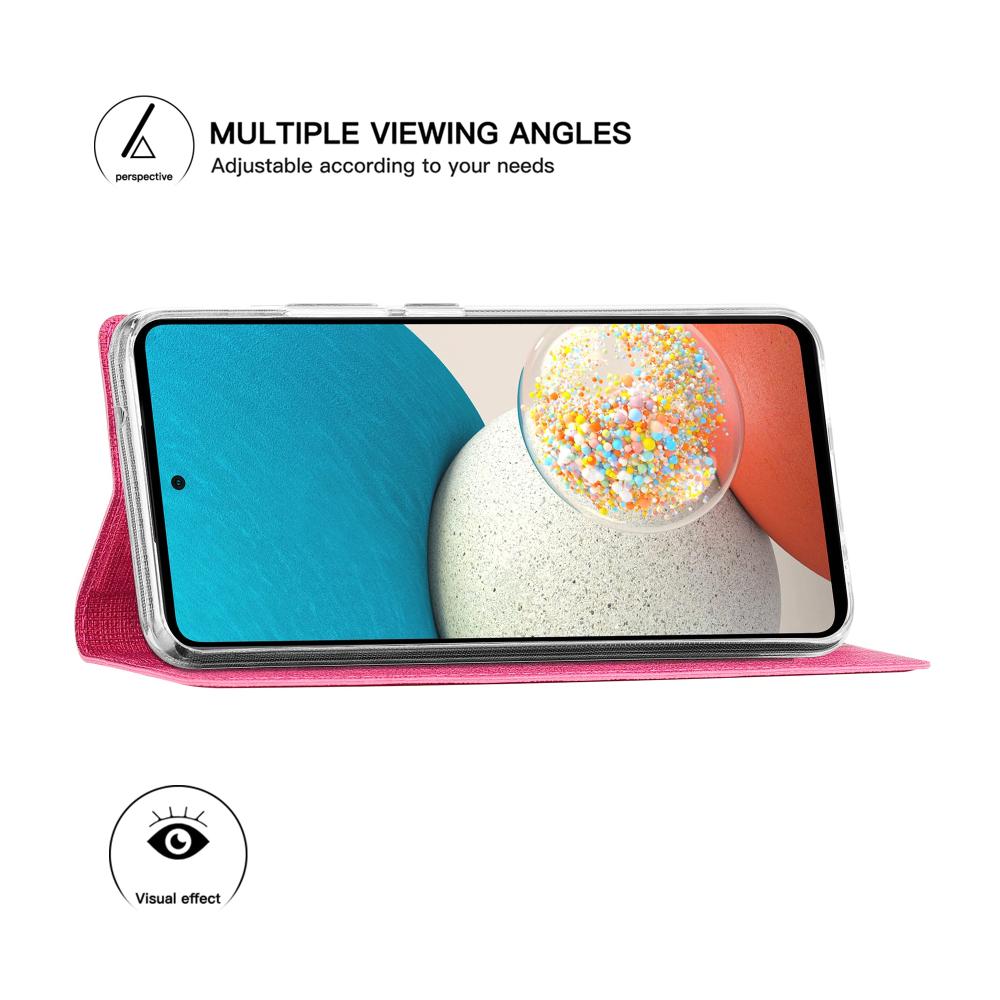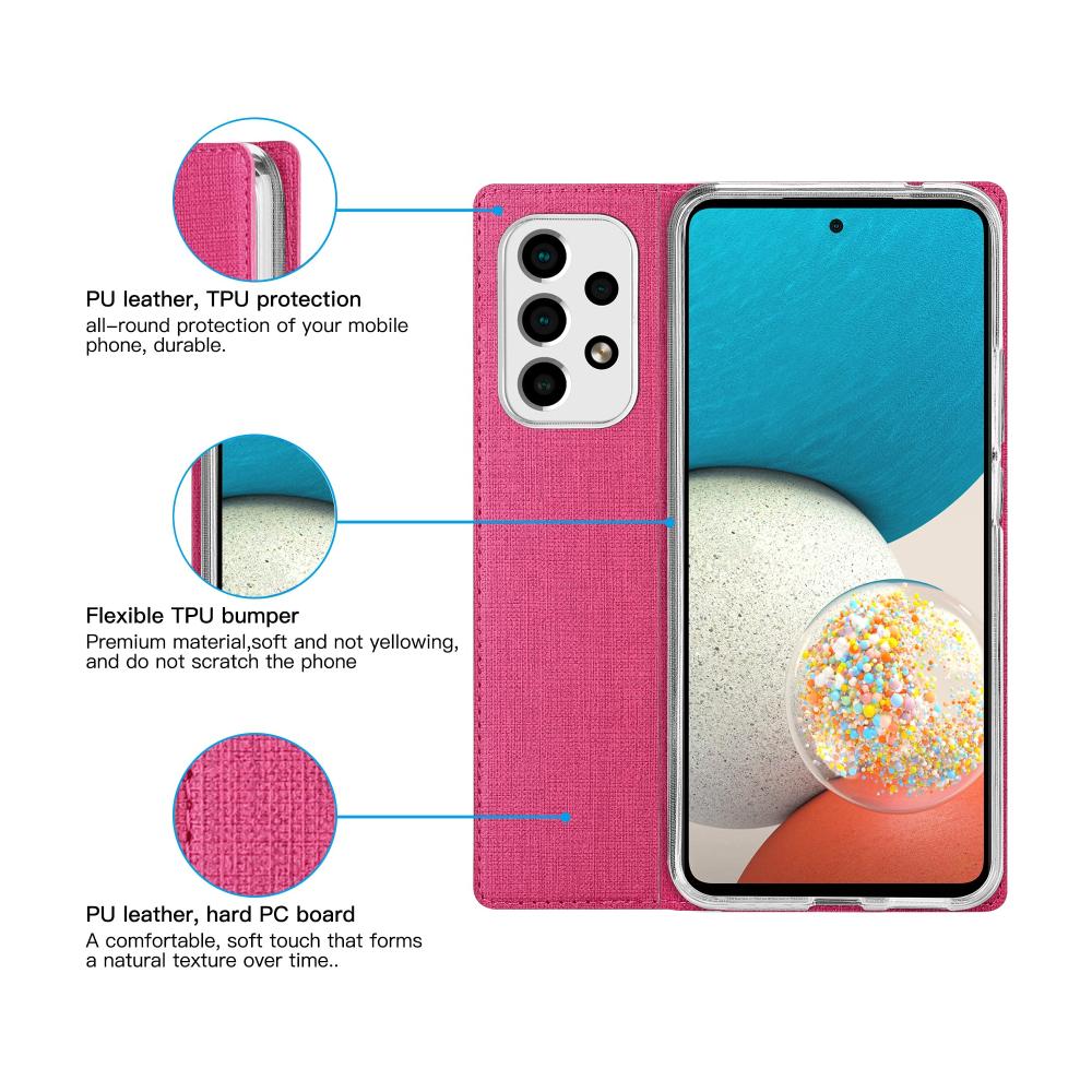 Entdecken Sie unsere elegante Klapphülle für das Samsung Galaxy A53 5G! Diese schlanke Hülle ist speziell für Ihr Handy entwickelt und bietet multifunktionale Eigenschaften wie ein Kartenfach für Kreditkarten und Ausweise sowie einen verstellbaren Betrachtungswinkel. Hergestellt aus umweltfreundlichem PU-Leder und weichem TPU-Innenmaterial, bietet sie eine perfekte Passform und einen magnetischen Saugnapf für maximalen Schutz. Kompatibel nur mit dem Samsung Galaxy A53 5G 2022. Im Lieferumfang enthalten: Kartenhalter und Ständer.
