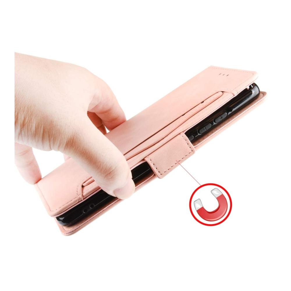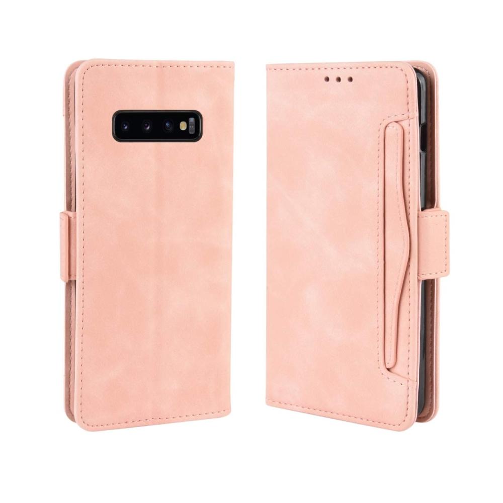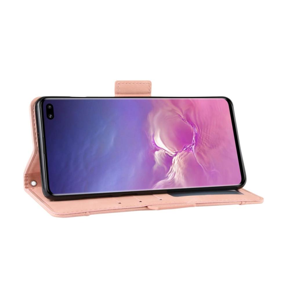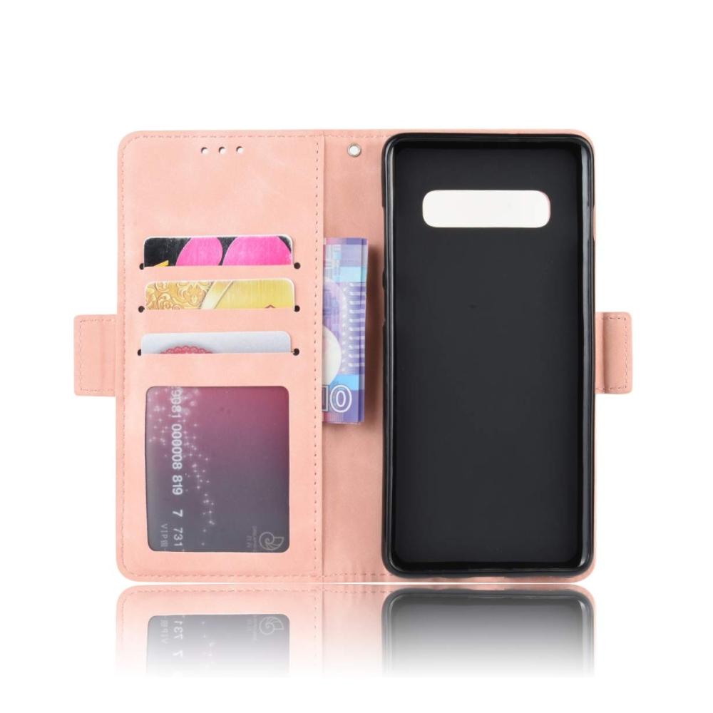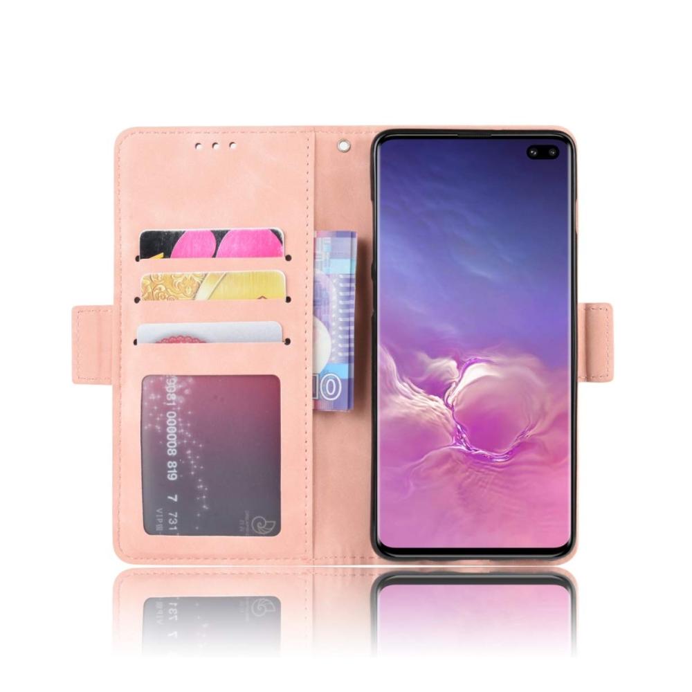 Schützen Sie Ihr Samsung Galaxy S10 mit Stil und Funktionalität mit dieser eleganten Lederhülle in Rosa im Brieftaschen-Stil. Die Hülle verfügt über ein luxuriöses Hautgefühl und ein Kalbmuster und bietet gleichzeitig ein separates Kartenfach für Ihre Karten.