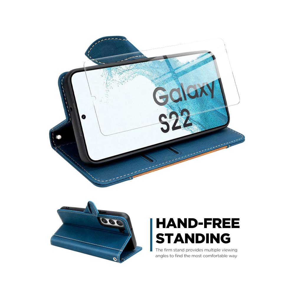 MOBESV Handyhülle für Samsung Galaxy S22 5G Hülle Leder, Samsung Galaxy S22 5G Klapphülle Handytasche Case für Samsung Galaxy S22 5G Handy Hüllen, Modisch Blau