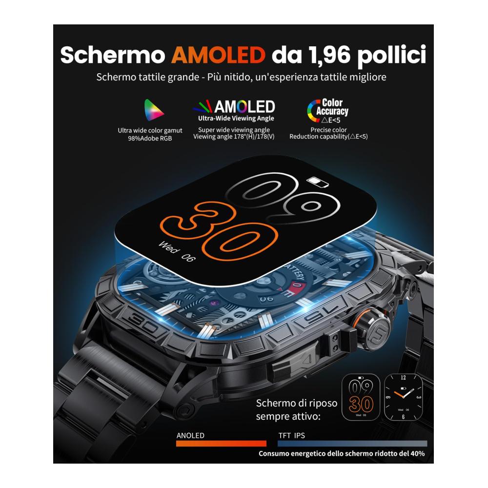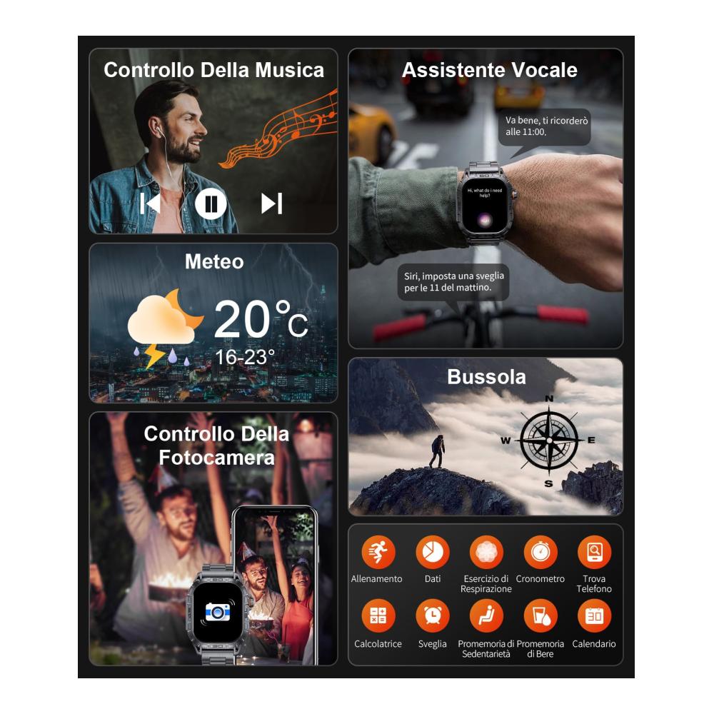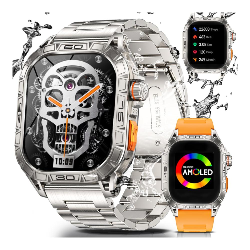 Entdecke die ESFOE Smartwatch für Herren mit Telefonfunktion und einem 1,96 AMOLED Display. Diese moderne Smartwatch bietet zahlreiche Funktionen wie Activity Tracking, Bluetooth-Anrufe und ist IP68 wasserdicht. Mit einem rechteckigen Design und Silberfarbe ist sie für ein erwachsenes Publikum geeignet. Die Smartwatch wird mit einem Ladekabel, Anleitung für fünf Länder und zwei Armbändern geliefert. Hol dir jetzt diese innovative Smartwatch