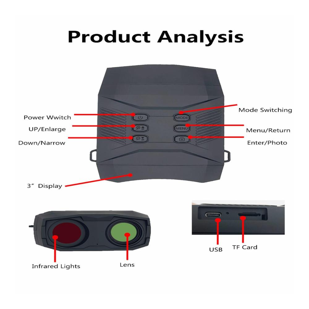 • ✔【Paket beinhaltet】Zusätzlich zur Nachtsichtbrille erhalten Sie auch 1 Tasche, 1 Datenkabel, 1 Umhängeband und eine Bedienungsanleitung. Dieses umfassende Paket stellt sicher, dass Sie alles haben, was Sie brauchen, um selbst in den dunkelsten Umgebungen kristallklare Fotos und Videos aufzunehmen und zu teilen.