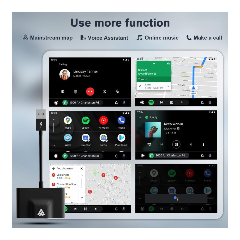 Einfach zu bedienen: Plug and Play, keine Notwendigkeit, den Bildschirm zu zerlegen, keine Notwendigkeit, APP herunterzuladen, stecken Sie den Adapter in den USB-Anschluss des Autos / Typ-C-Anschluss, schalten Sie Bluetooth und WLAN auf Android ein, suchen Sie nach dem Android Auto-Adapter zum Verbinden. Nach der ersten Installation, wenn der Automotor startet, startet er automatisch und verbindet sich schnell mit Ihrem Android.