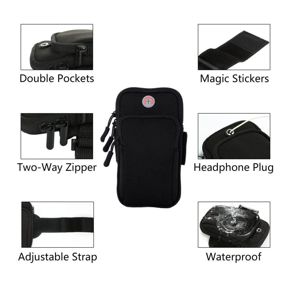 GroßvolumigenIn 2 Fächern werden verschiedene Kleinteile aufbewahrt, um den Verlust von Wertsachen zu verhindern, was sehr praktisch und praktisch ist. | Speichern Sie Ihr TelefonDie Kopfhörerbuchse eignet sich zur Aufbewahrung von Mobiltelefonen unter 6 Zoll und ermöglicht es Ihnen, während des Trainings Musik zu genießen. | Wasserdicht und langlebigHochwertiges Tauchtuch, wasserdicht, schweißfest, schmutzabweisend und verschleißfest, bietet ein besseres Erlebnis für Ihren Sport und Ihre Fitness. |