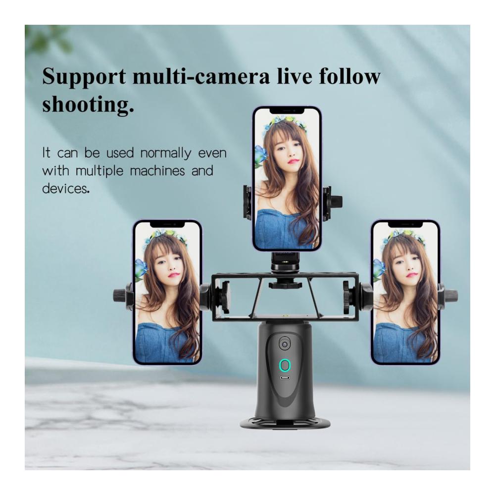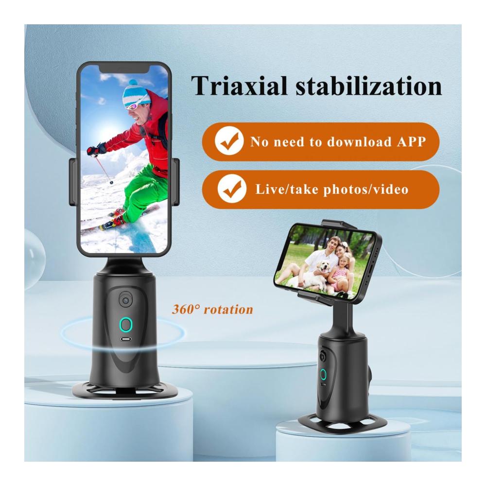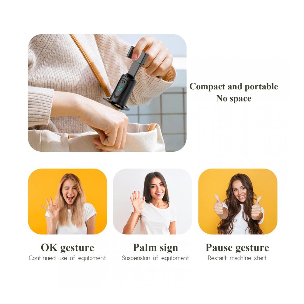 Unser Auto Face Tracking Telefonhalter bietet eine erstklassige Lösung für Ihre Aufnahmebedürfnisse. Mit Gesichtsverfolgung und Gestenerkennung ermöglicht dieser Tracking Stabilisator für Mobiltelefone präzise Aufnahmen. Es unterstützt horizontale 360°-Drehung und 180°-Neigungsdrehung, was es vielseitig einsetzbar macht. Das abnehmbare Design erlaubt es, Schrauben oder Handy-Clips anzubringen, um sowohl Mobiltelefone als auch Kameras zu nutzen. Dank des einfachen Installationsprozesses ist Ihr Gerät schnell einsatzbereit. Verbessern Sie Ihre Aufnahmen jetzt mit unserem Smartphone Kamerahalter!