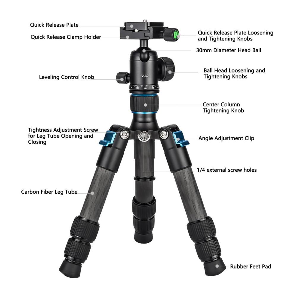 • MEHR ERWEITERUNG: Mit 1/4-Zoll-Schrauben zur Unterstützung von DSLR-, MSLR-, DV-Camcordern, Mobiltelefonen, Sportkameras und anderen Geräten. An der Seite des Stativs befindet sich ein 1/4-Zoll-Schraubenloch, das problemlos mit einem Gelenkarm kombiniert werden kann, um verschiedene Geräte wie Mobiltelefone, LED-Videoleuchten, Mikrofone und viele andere Kamerahilfsgeräte zu erweitern.