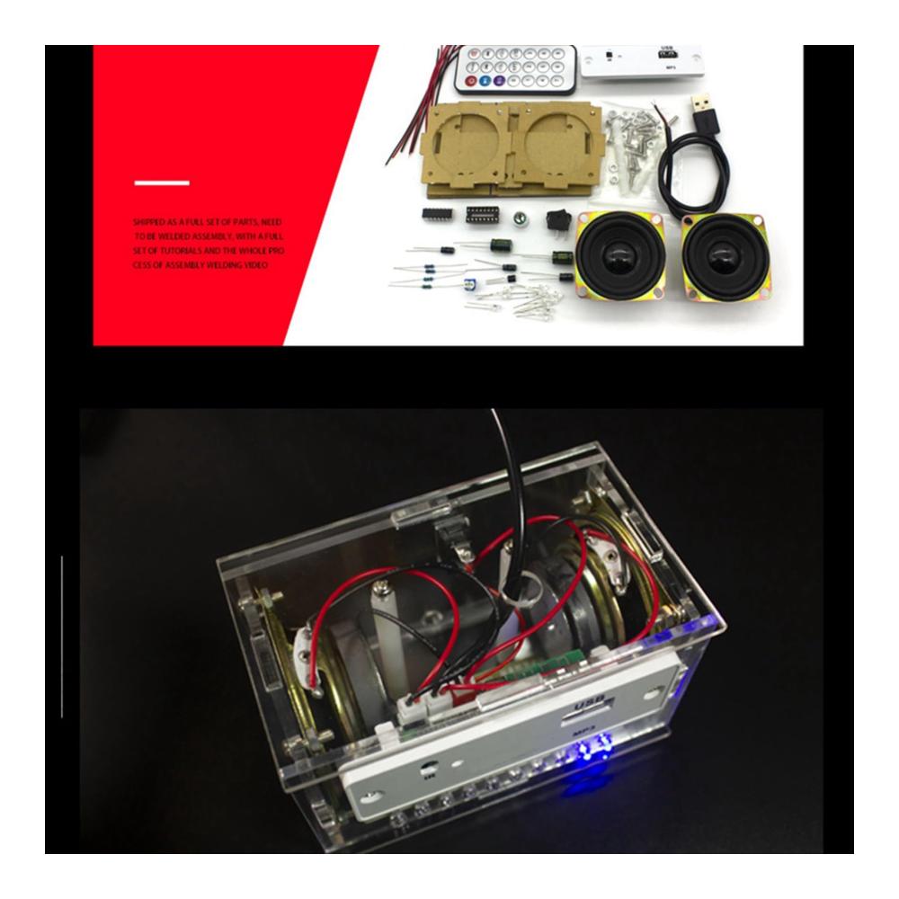 Alle Teile müssen selbst montiert werden. Die äußere Hülle ist transparent, wenn das Papier abgerissen wird. Das gesamte Bluetooth-Lautsprecher-Kit ist mit einem USB-Netzkabel ausgestattet, und die Bluetooth-Platine ist gut verschweißt.