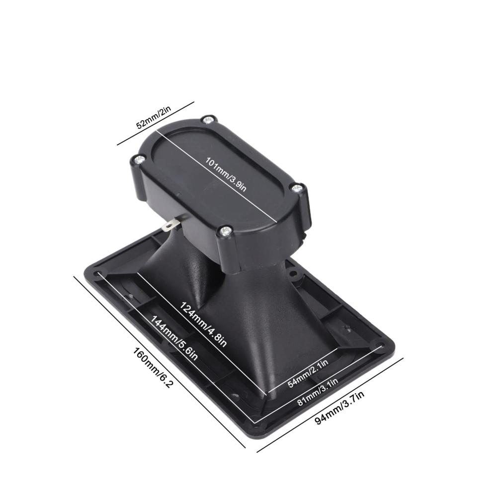 Spezifikation:Artikeltyp: LautsprecherMaterial: KunststoffGröße: ca. 160 x 94 x 103 mm/6,3 x 3,7 x 4,1 ZollMindestöffnungsgröße: Ca. 124 x 54 mm/4,9 x 2,1 ZollFrequenz: 3-20KHzEmpfindlichkeit: 98 dBMaximale Leistung: 75, 150 WImpedanz: 4–8 ΩPaketliste:2 x Hupe