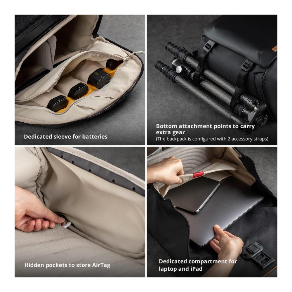 Der OneGo Air Kamerarucksack ist die ultimative Wahl für Fotografen und Drohnenliebhaber. Mit seinem modernen und leichten Design ist er perfekt für Stadtfotografie und Reisen geeignet. Der Rucksack bietet maßgeschneiderten Stauraum für Ihre Kameraausrüstung und elektronischen Geräte wie das 16-Zoll-Macbook Pro und das 12,9-Zoll-iPad Pro. Hergestellt aus hochwertigem Material mit einer verschleißfesten und spritzwassergeschützten PU-Beschichtung, ist dieser Rucksack ideal für Outdoor-Aufnahmen geeignet. Komfortfunktionen wie die Original-Brustgurt-Einstellschnalle und der diebstahlsichere YKK-Reißverschluss sorgen für eine angenehme und sichere Nutzung. Entdecken Sie den OneGo Air Kamerarucksack und erleben Sie herausragende Qualität und Funktionalität.