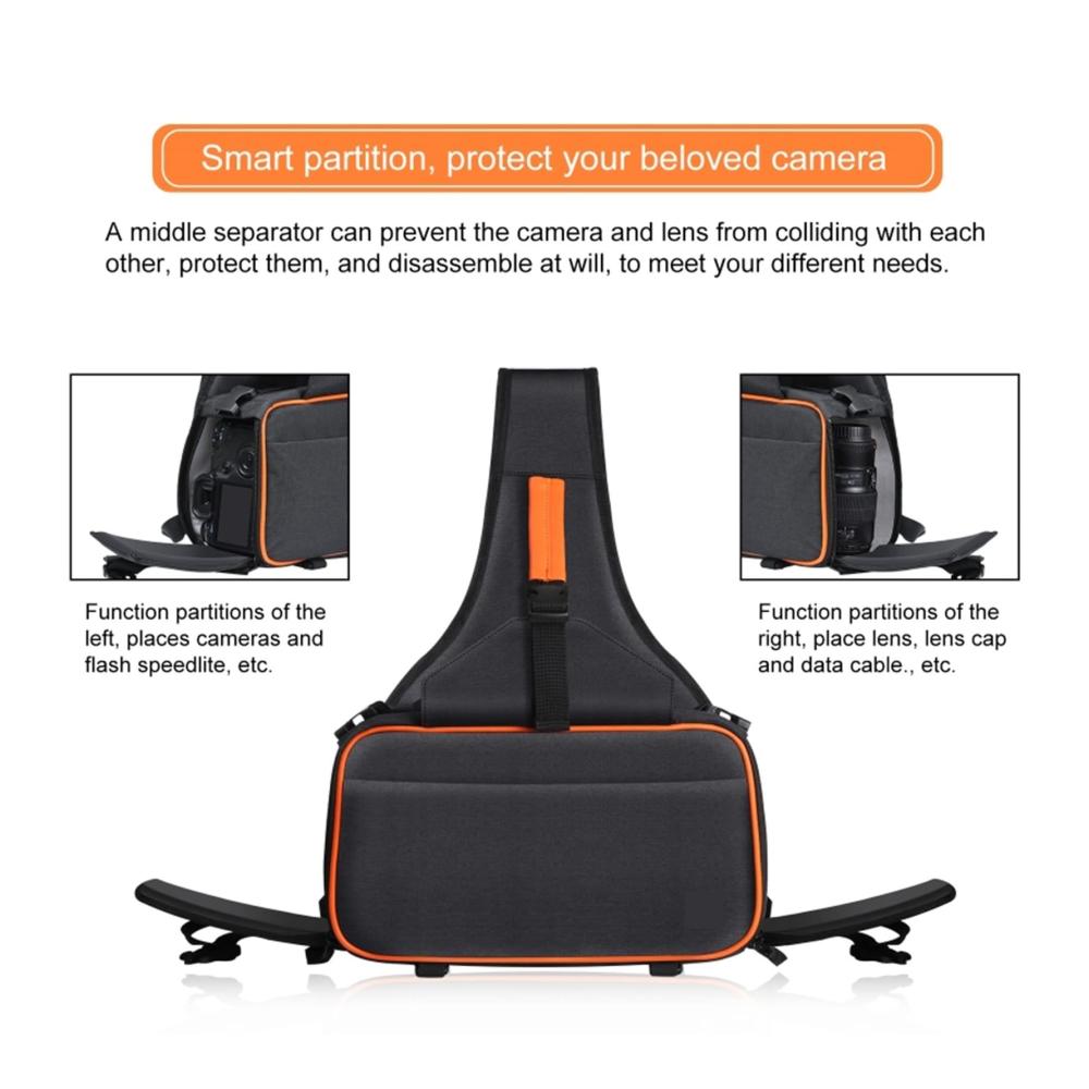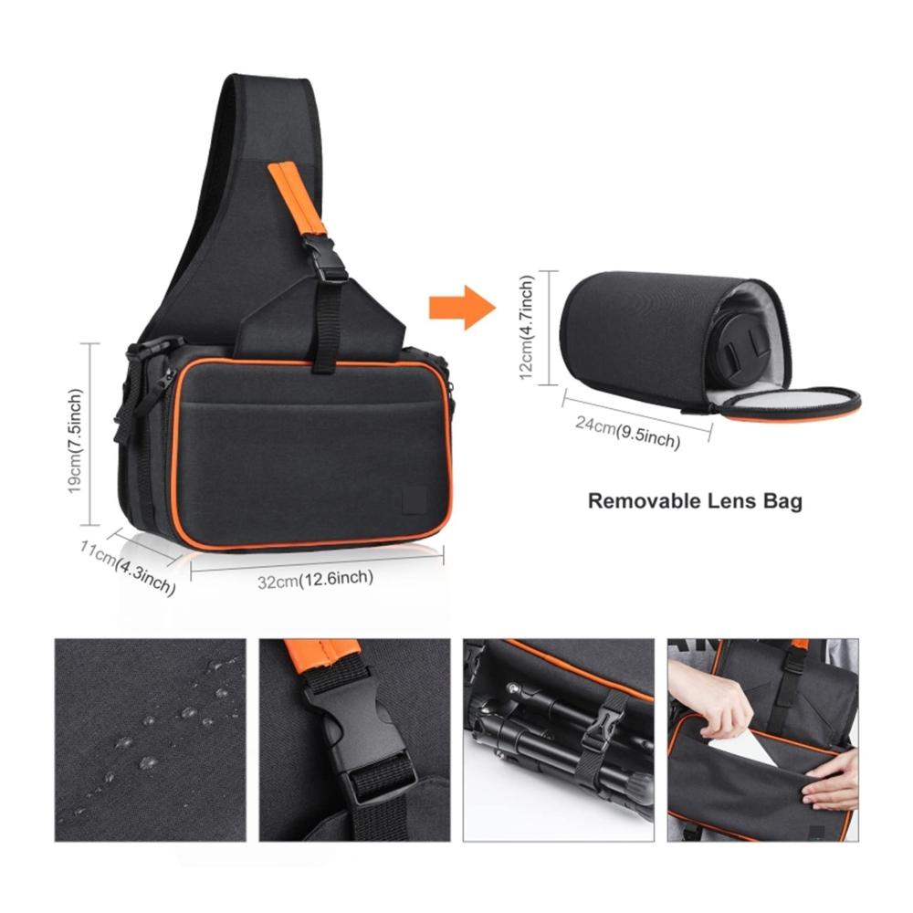Der Kameratasche for dem abnehmbaren Objektivgehäuse ist tragbar und wasserdicht und kann Ihre Kamera, Linse, das Stativ und andere Zubehör tragen.