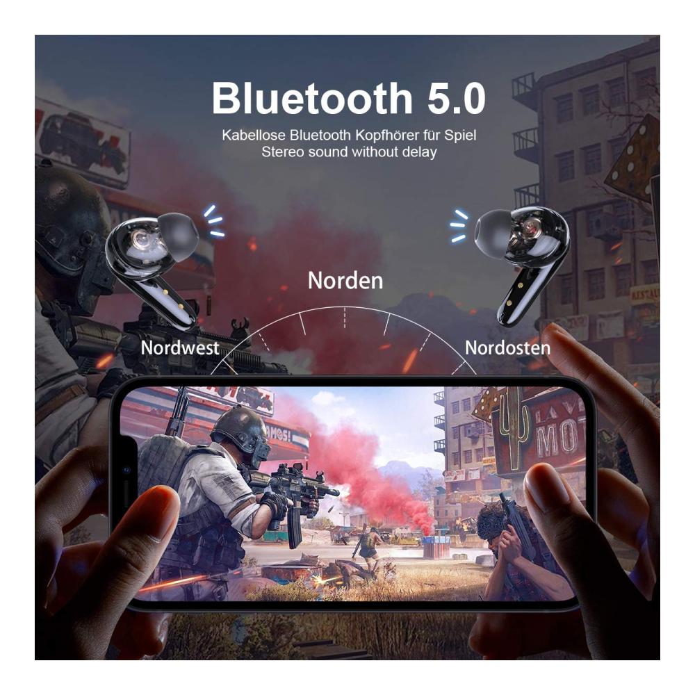 NEUESTE BLUETOOTH 5.0 Echte kabellose Kopfhörer mit modernster Bluetooth 5.0-Technologie. Es nimmt eine stabilere Bluetooth-Verbindung mit Touch-Steuerung an, ohne Kabel, und genießt echtes WLAN. Audio wird nicht mehr ein- und ausgeschaltet, Ihre Musikwelt wird nicht mehr gestört.
