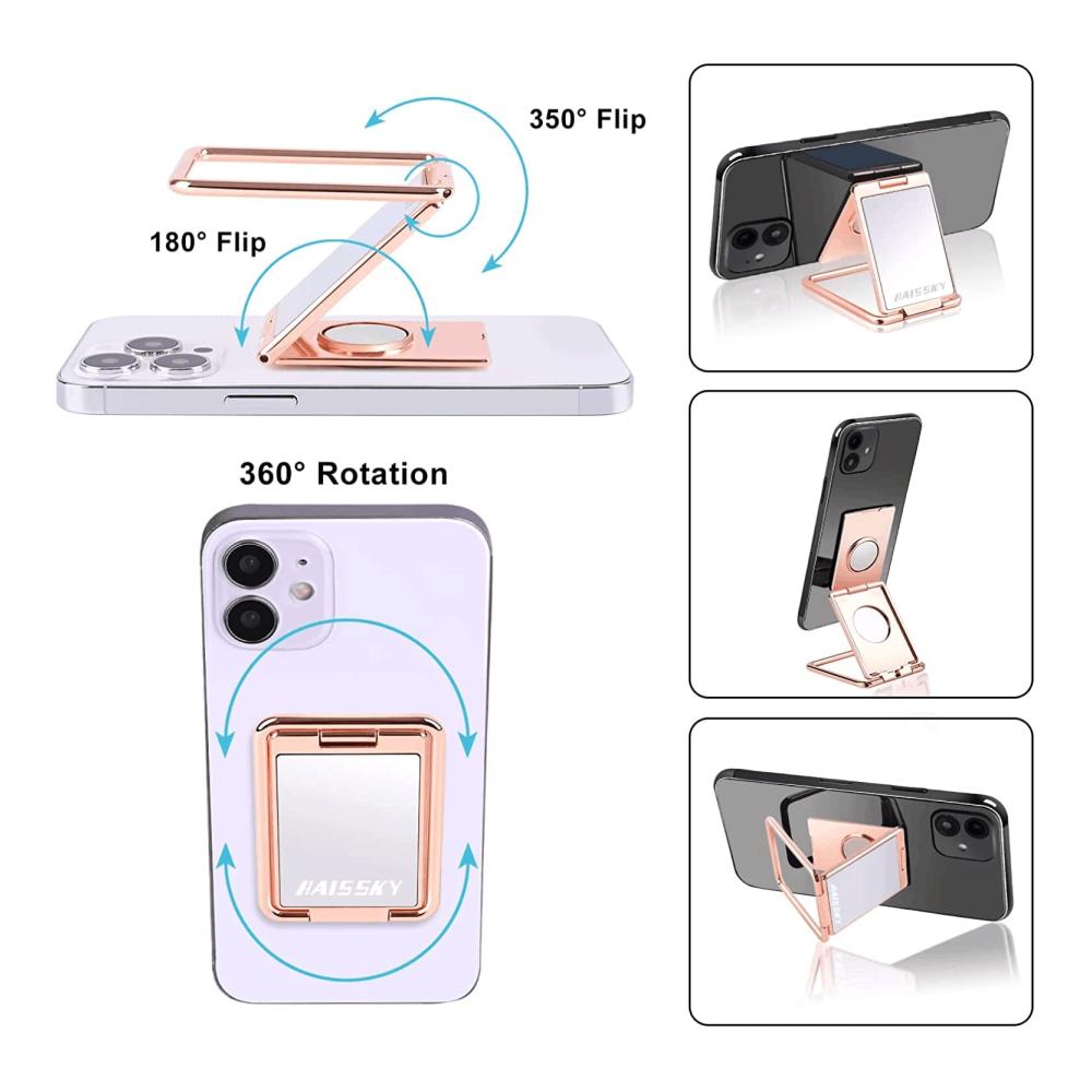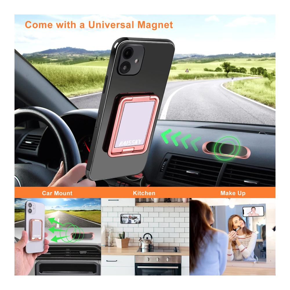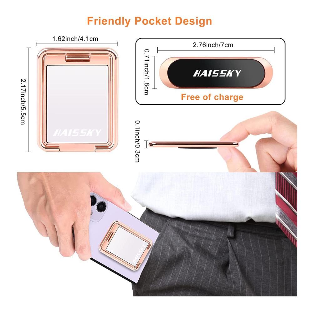 Verstellbarer Telefonständer360 drehbarer Telefonständer ermöglicht das Ansehen von Shows auf unterschiedlicher Augenhöhe, kann das Telefon in verschiedene Positionen mit verschiedenen Winkeln bringen. | TelefonringhalterDer Ringgriff kann sich perfekt an verschiedene Anlässe anpassen und verhindert, dass Ihr Telefon aus den Händen rutscht. | Magnetischer TelefonständerDieser Fingerring-Ständer besteht aus einem Zinklegierungsmetall und einem Spiegel und wird mit einem sehr starken Magneten zur Befestigung im Auto geliefert. |