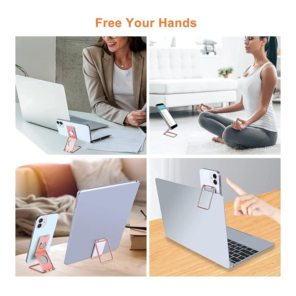 Einstellbar und tragbar – 360 ° Drehung und 2 verstellbare Arme machen es bequemer, Ihnen mehr Betrachtungswinkel zu bieten als jeder andere Handy-Ringhalter oder Telefonständer, der ein gutes Schreibtischzubehör ist, wenn Sie Videos ansehen, Spiele spielen, telefonieren, ansehen Rezepte mit Facetime.