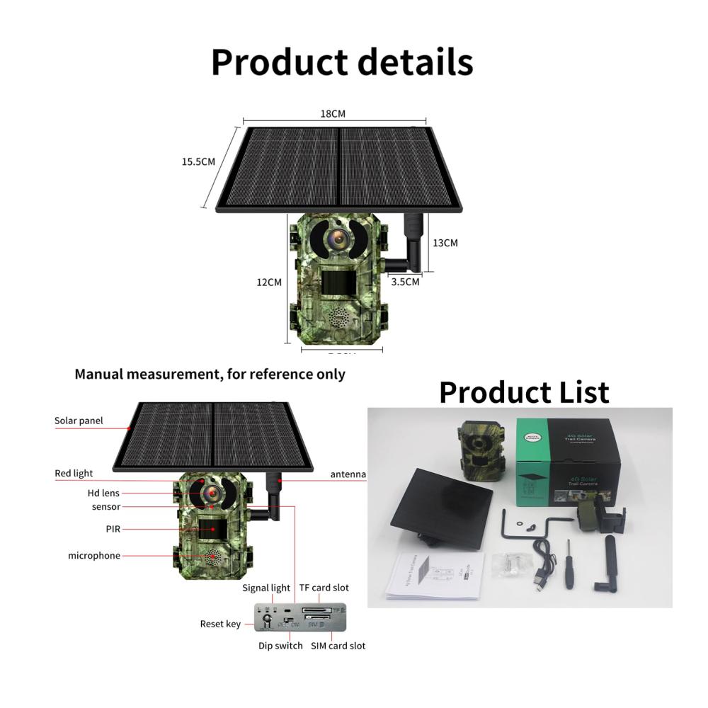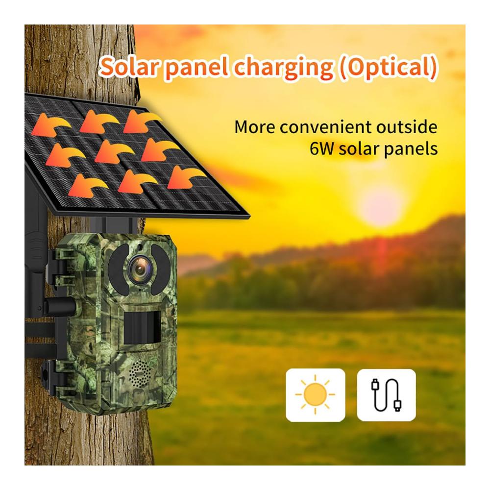 Entdecken Sie fortschrittliche Überwachung: Die Wildkamera Solar 4MP Jagdkamera bietet herausragende Funktionen für den Innen- und Außenbereich. Mit einer Auflösung von 2560 x 1440, 100 % kabellosem, solarbetriebenem Design und Liteos-Betriebssystem überzeugt sie durch schnelles Aufwachen und Push-Benachrichtigungen. Die leistungsstarken 850nm Infrarotlichter ermöglichen eine effektive Nachtsichtdistanz von bis zu 30 Metern. Unterstützt Cloud-Aufzeichnung, Wolkenwiedergabe und Gerätefreigabe. Der hochwertige Lautsprecher und das hochauflösende Mikrofon ermöglichen Zwei-Wege-Sprachkommunikation mit Echounterdrückungsfunktion. Die Lieferung umfasst alles, was Sie für die Montage benötigen. Erleben Sie Sicherheit neu mit dieser innovativen Wildkamera